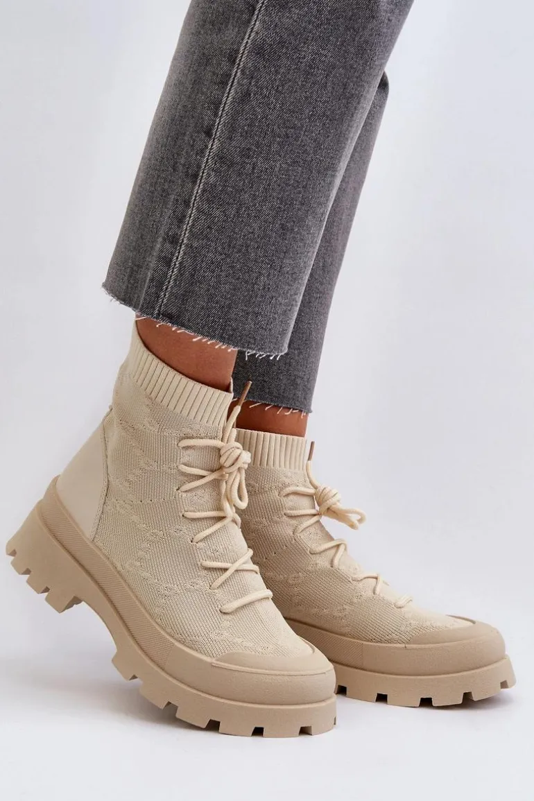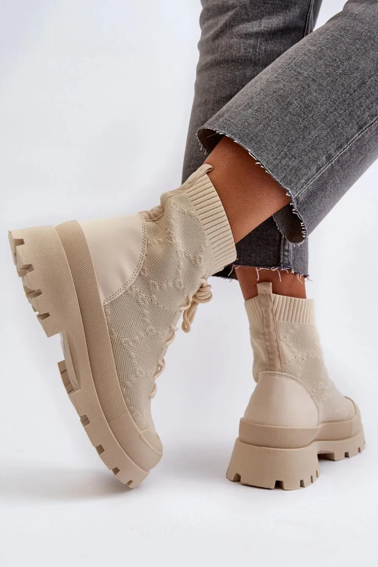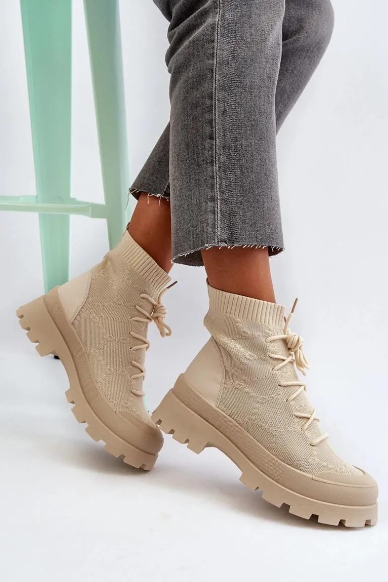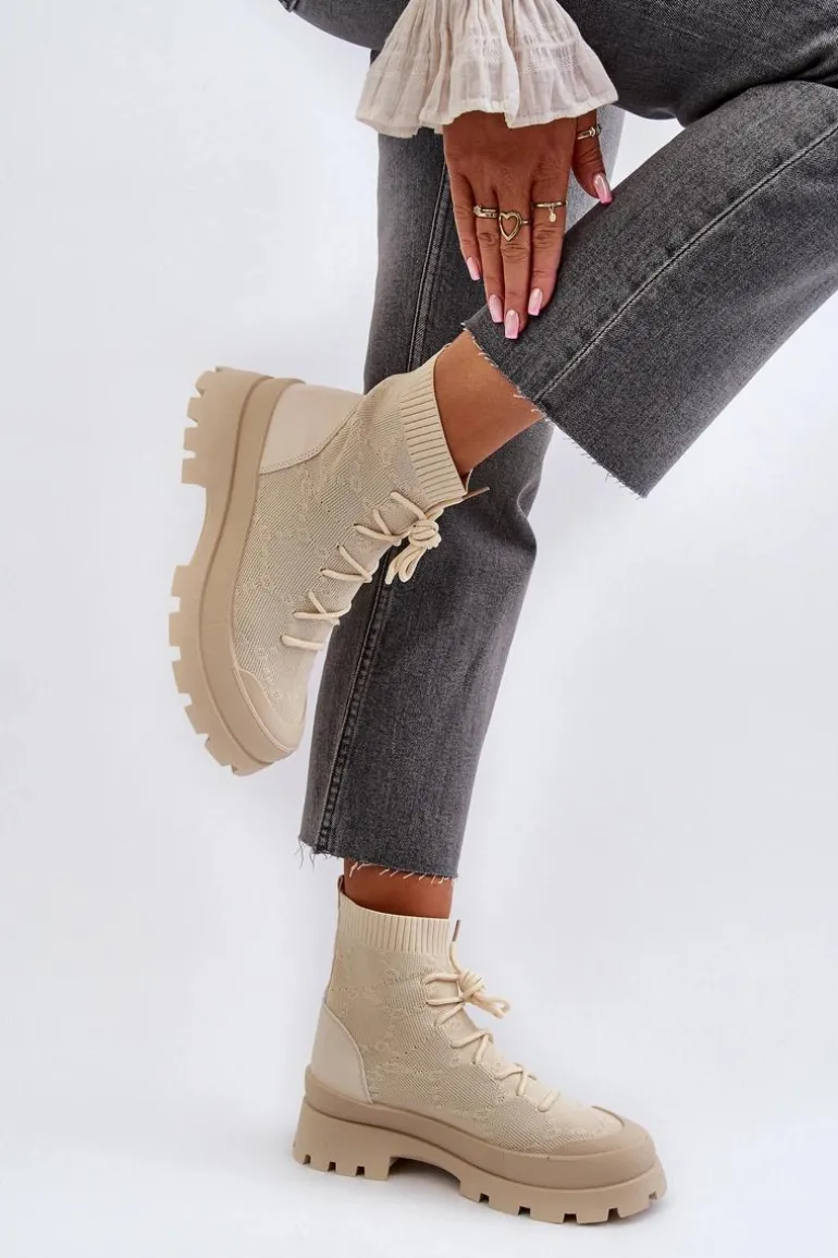 Damskie Skarpetkowe Wsuwane Botki Jasnobeżowe Solime