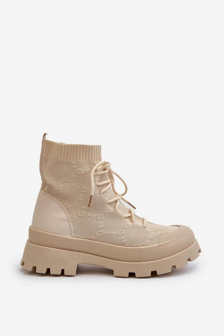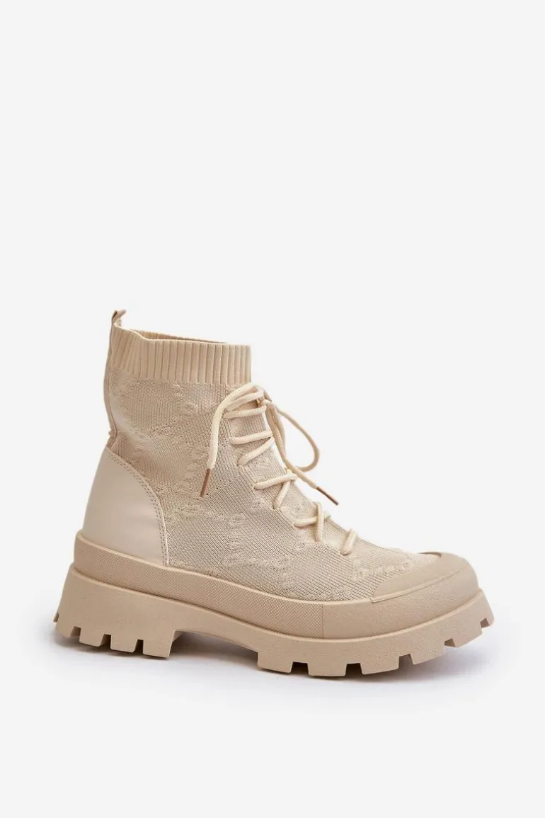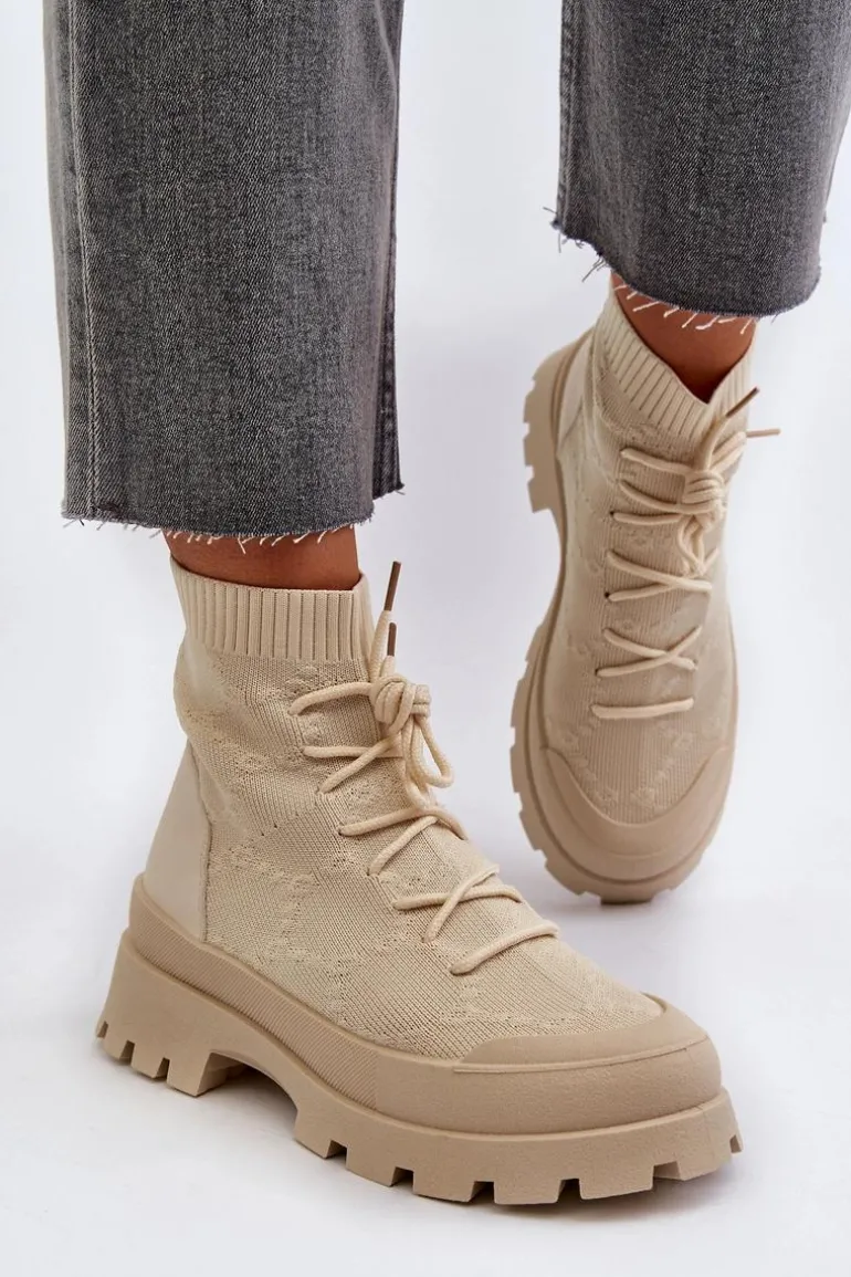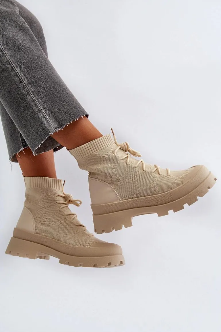 Damskie Skarpetkowe Wsuwane Botki Jasnobeżowe Solime