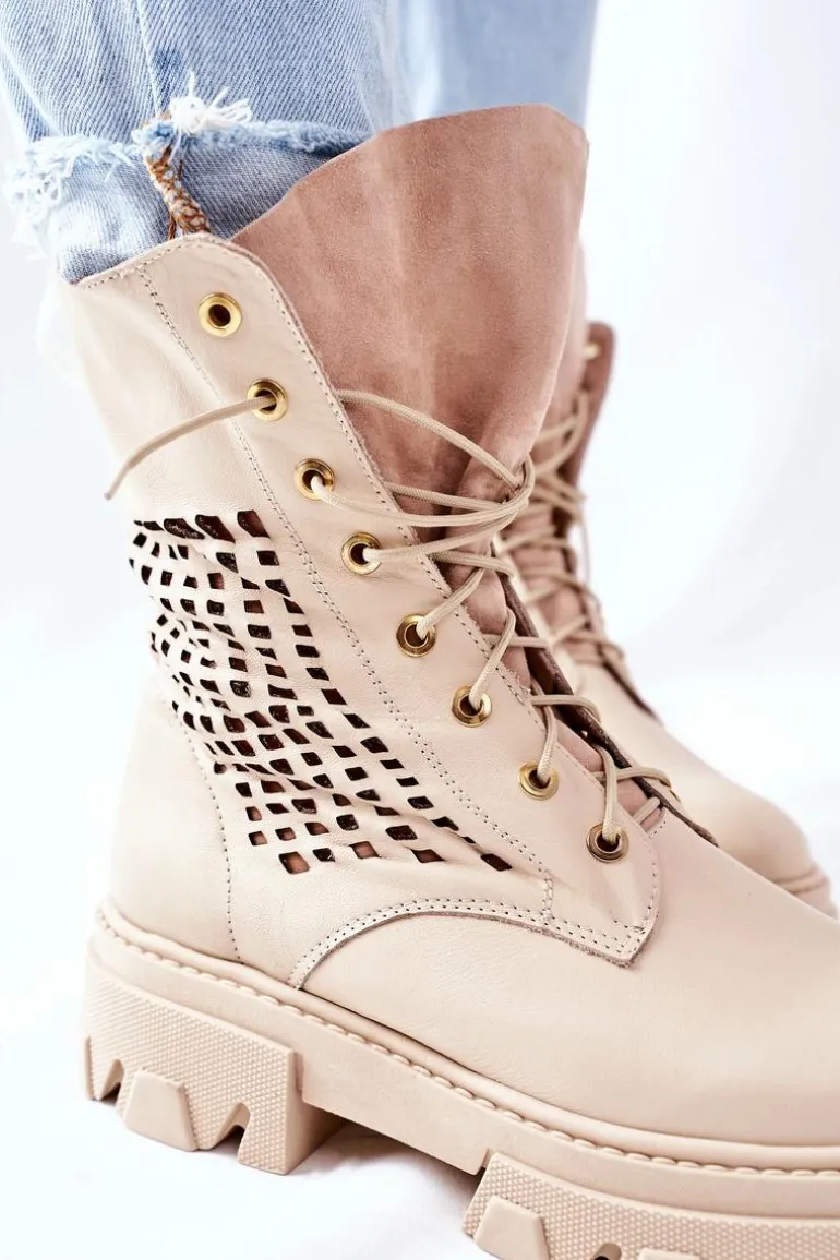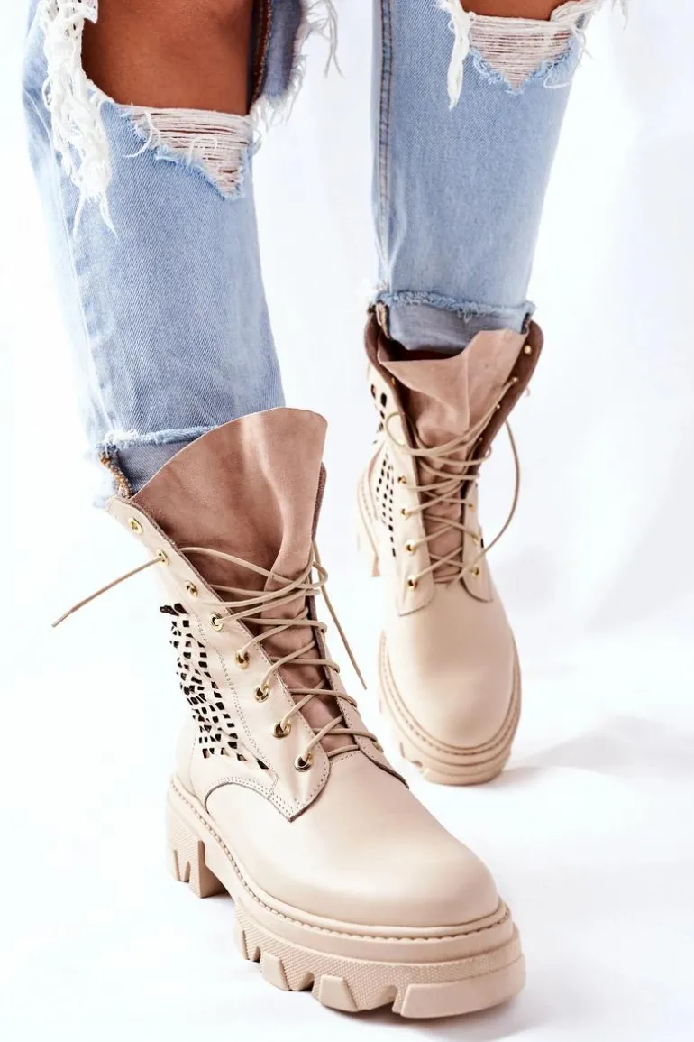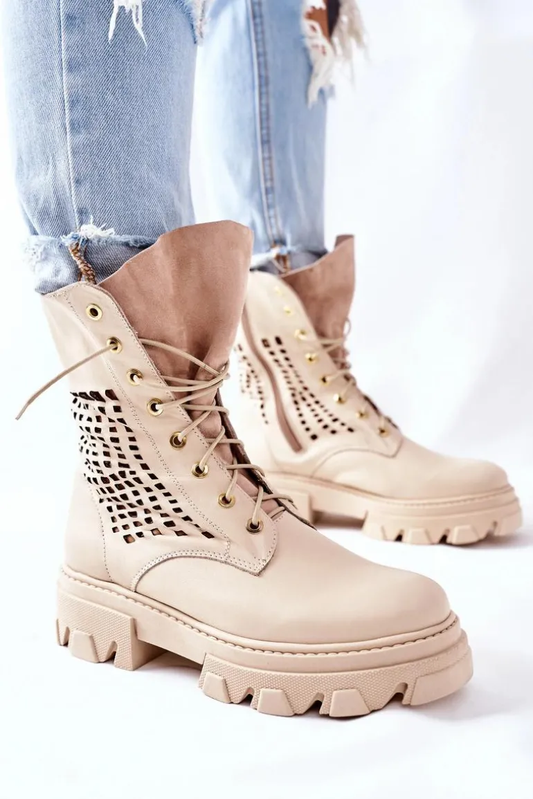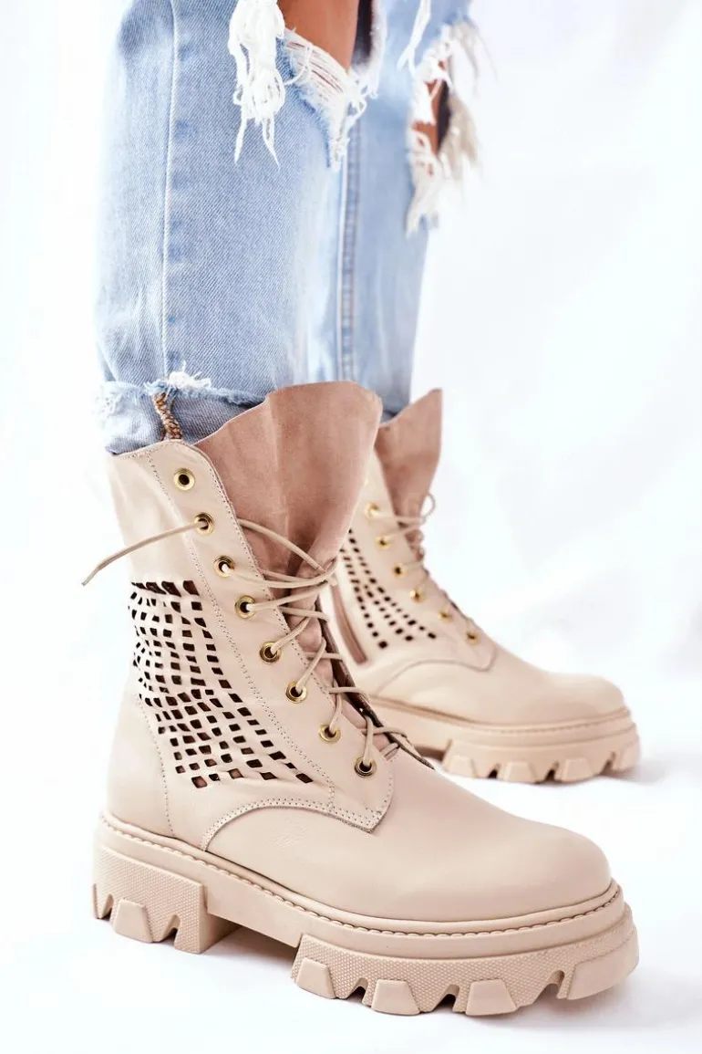 Szukasz mocniejszego stylu? Dobrze trafiłaś, bo te botki spełniają Twoje wymagania! Z nimi stworzysz wiele ciekawych stylizacji. Wysoka cholewka oraz masywna podeszwa – co tu więcej dodawać? Klasyczny fason ze sznurowaniem oraz zapięciem na suwak. Botki w całości wykonane z najwyższej jakości skóry. Przy wyborze rozmiaru prosimy sugerować się tabelą rozmiarów.