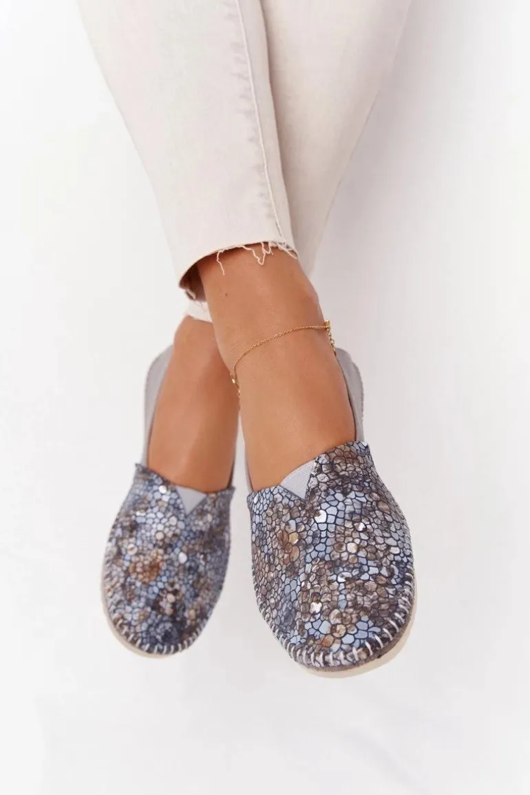 Damskie Skórzane Baleriny Maciejka 01930-86 Popielate