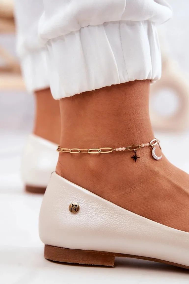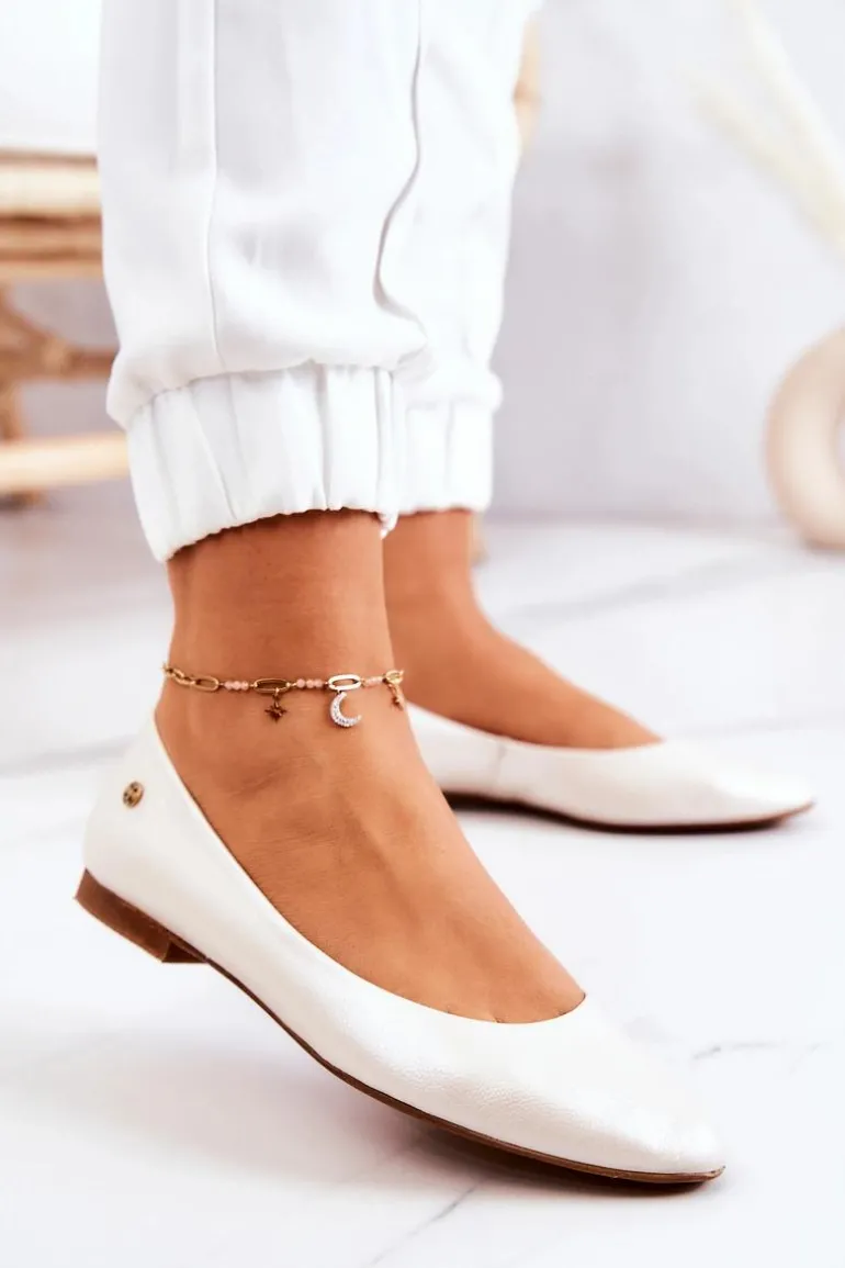 Damskie Skórzane Baleriny Maciejka 04100-26 Jasnobeżowe