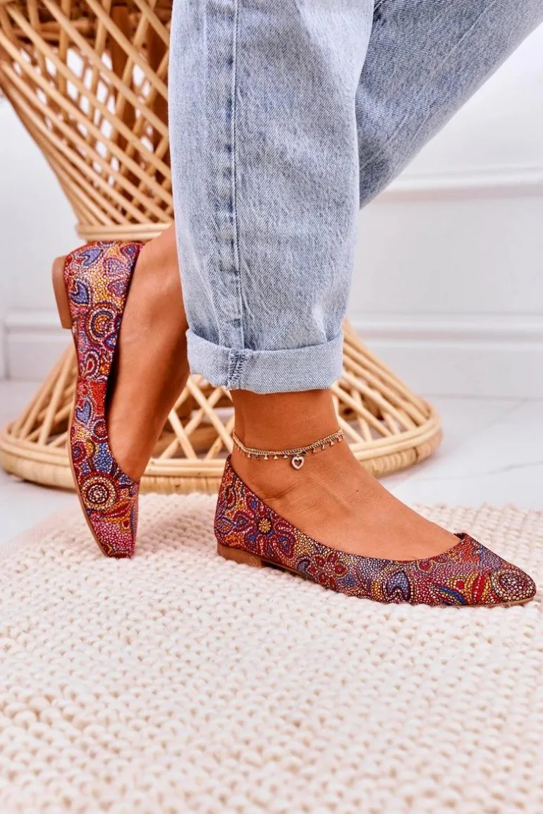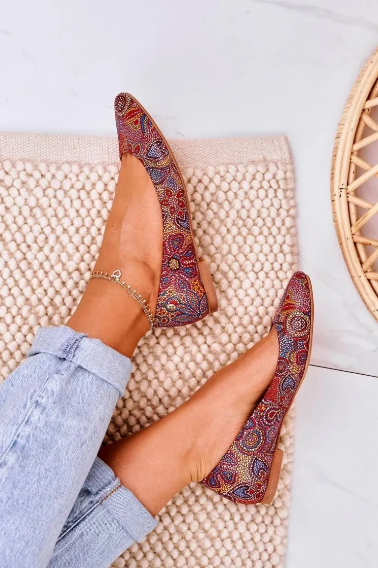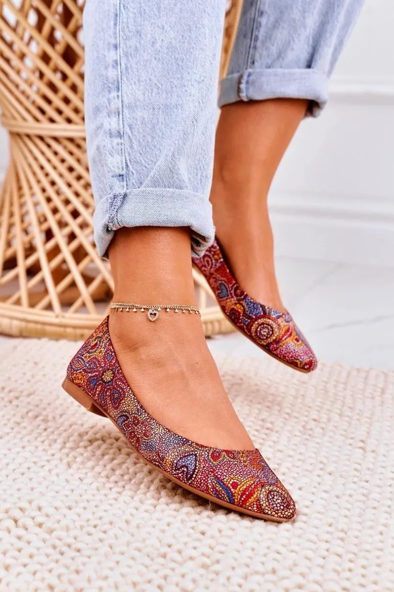 Damskie Skórzane Baleriny Maciejka Czerwone W Kwiaty 04100-38