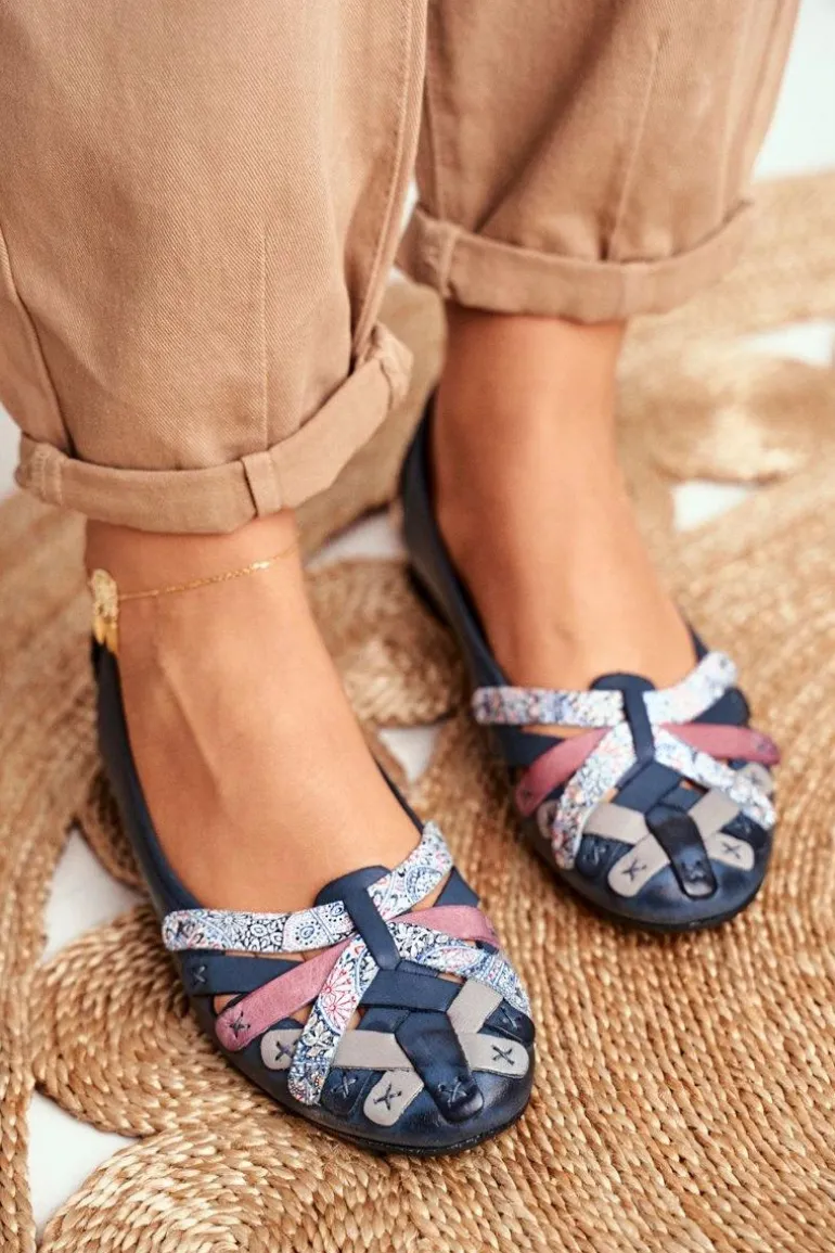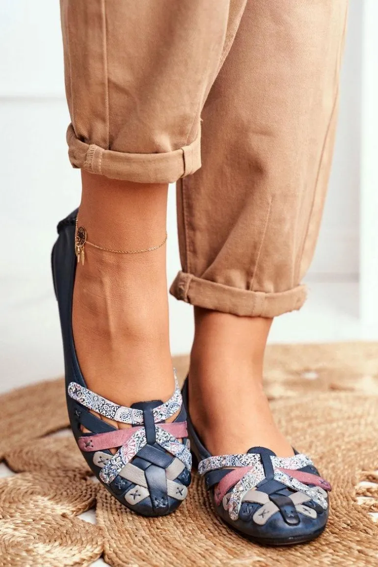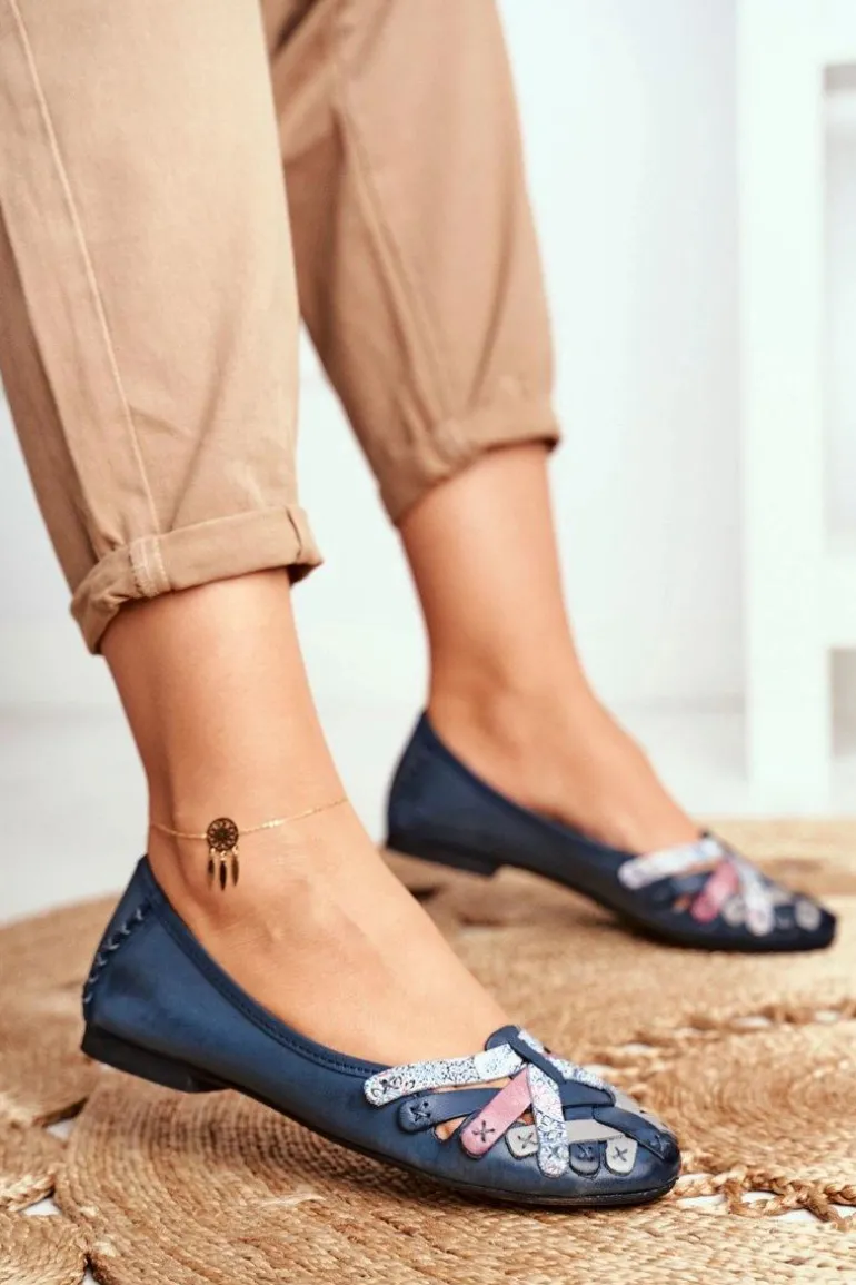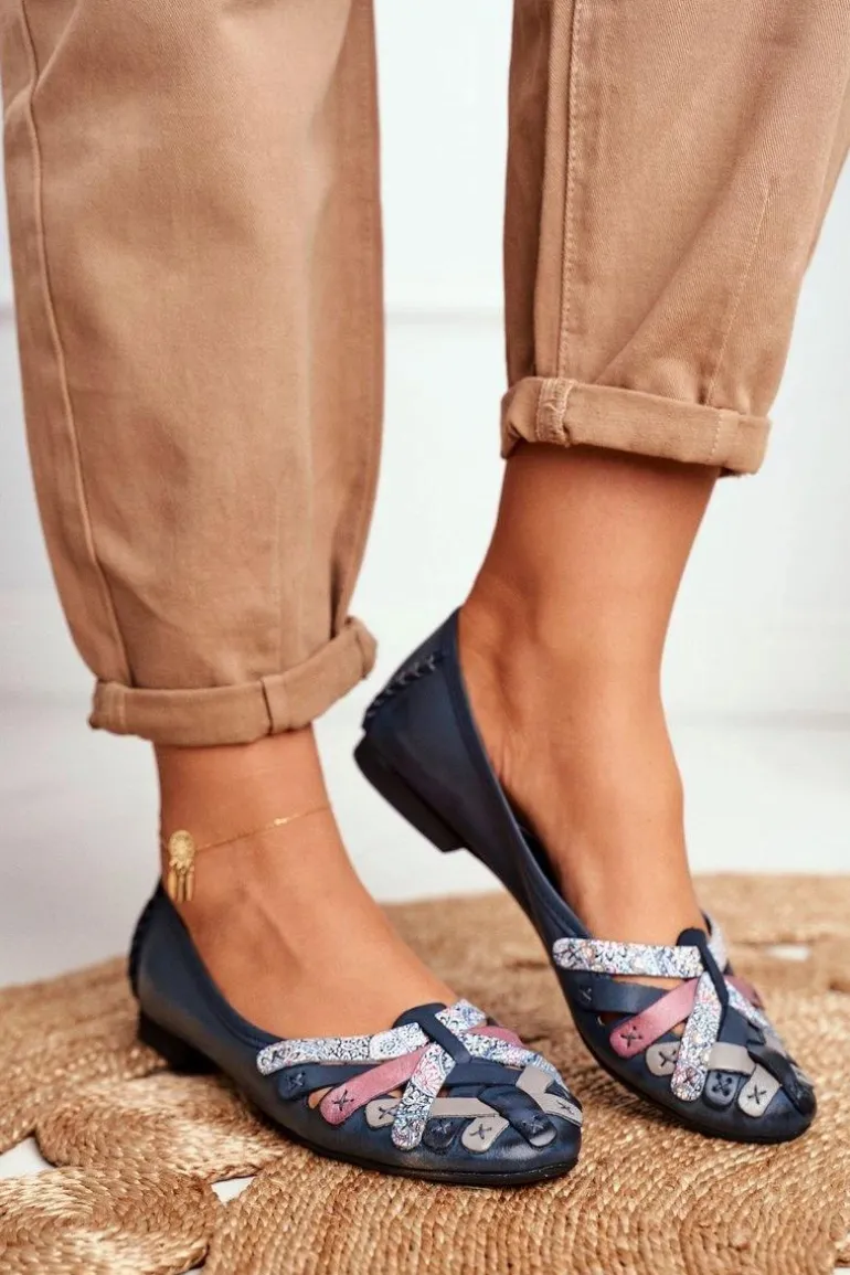 Damskie Skórzane Baleriny Maciejka Granatowe 01358-27