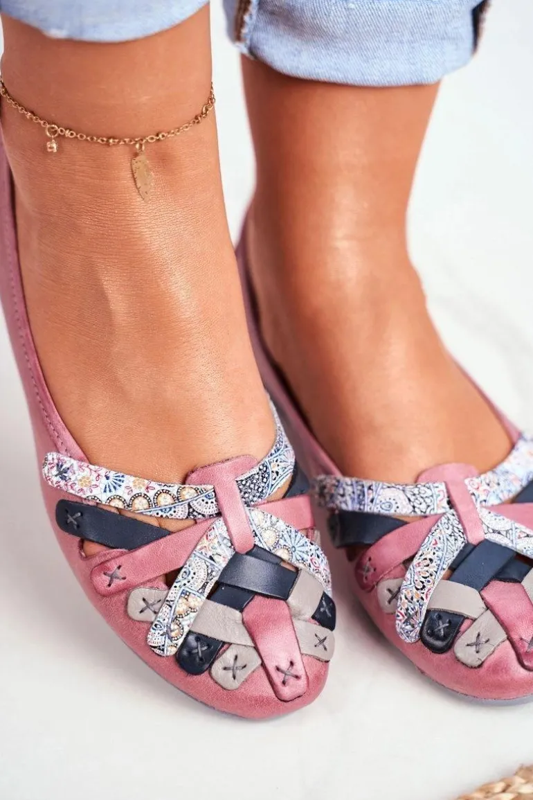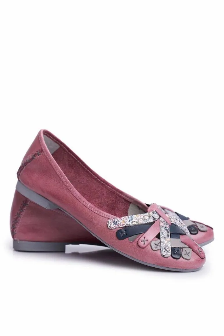 Damskie Skórzane Baleriny Maciejka Różowe 01358-15