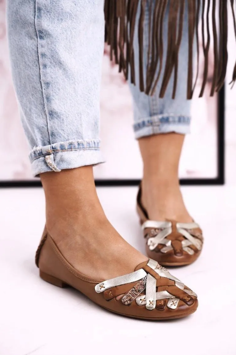 Damskie Skórzane Baleriny Maciejka Rude 01358-46