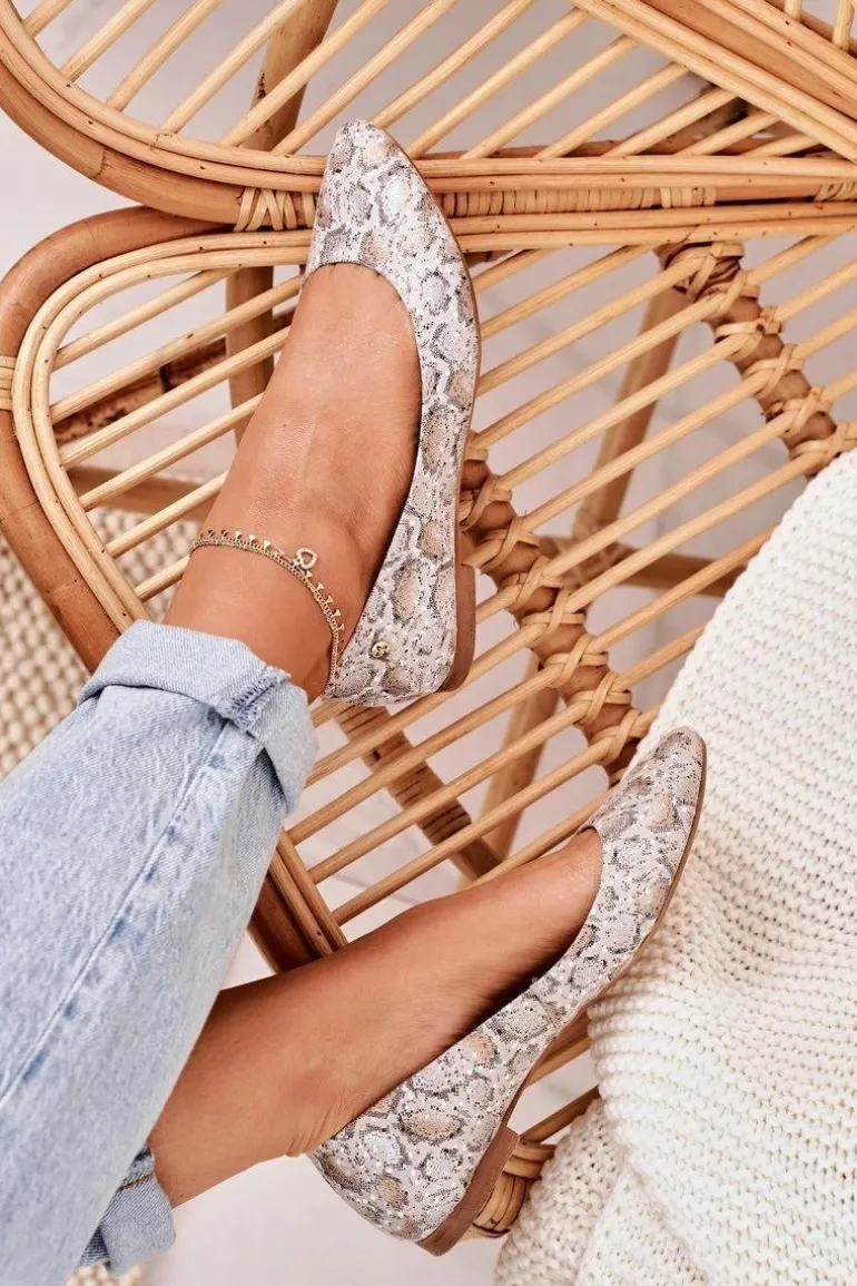 Damskie Skórzane Baleriny Maciejka Złoto Beżowe 04100-22
