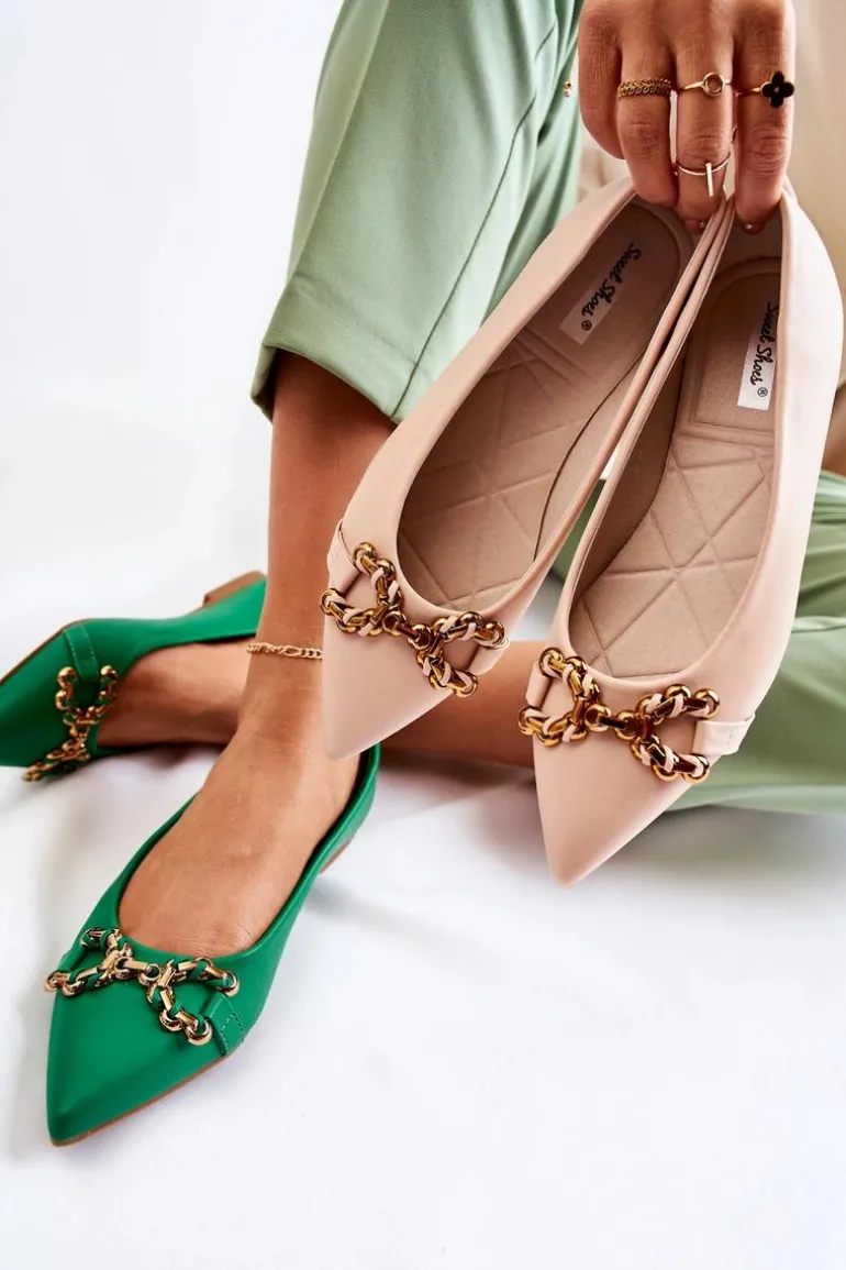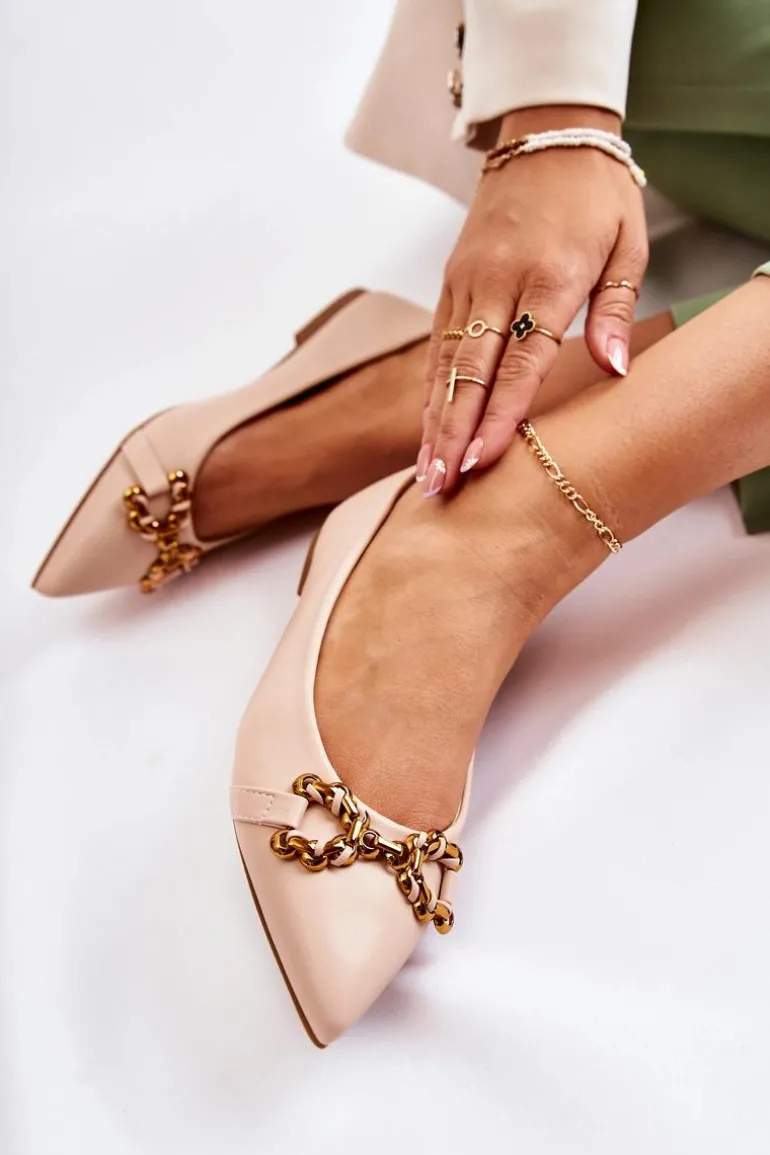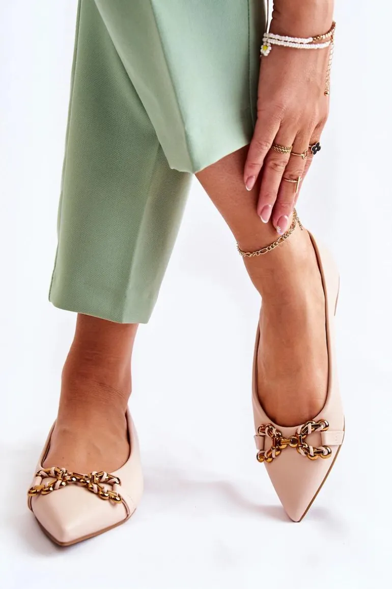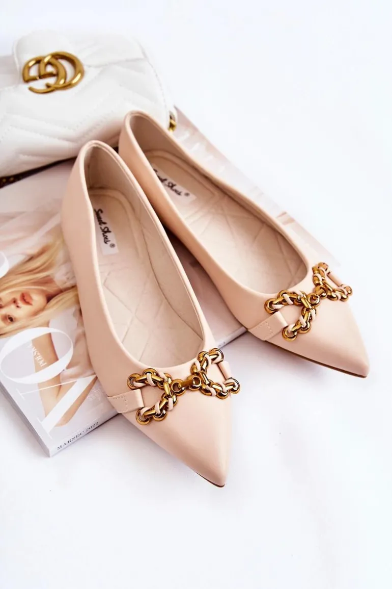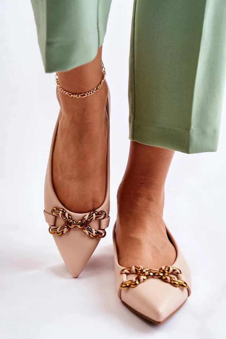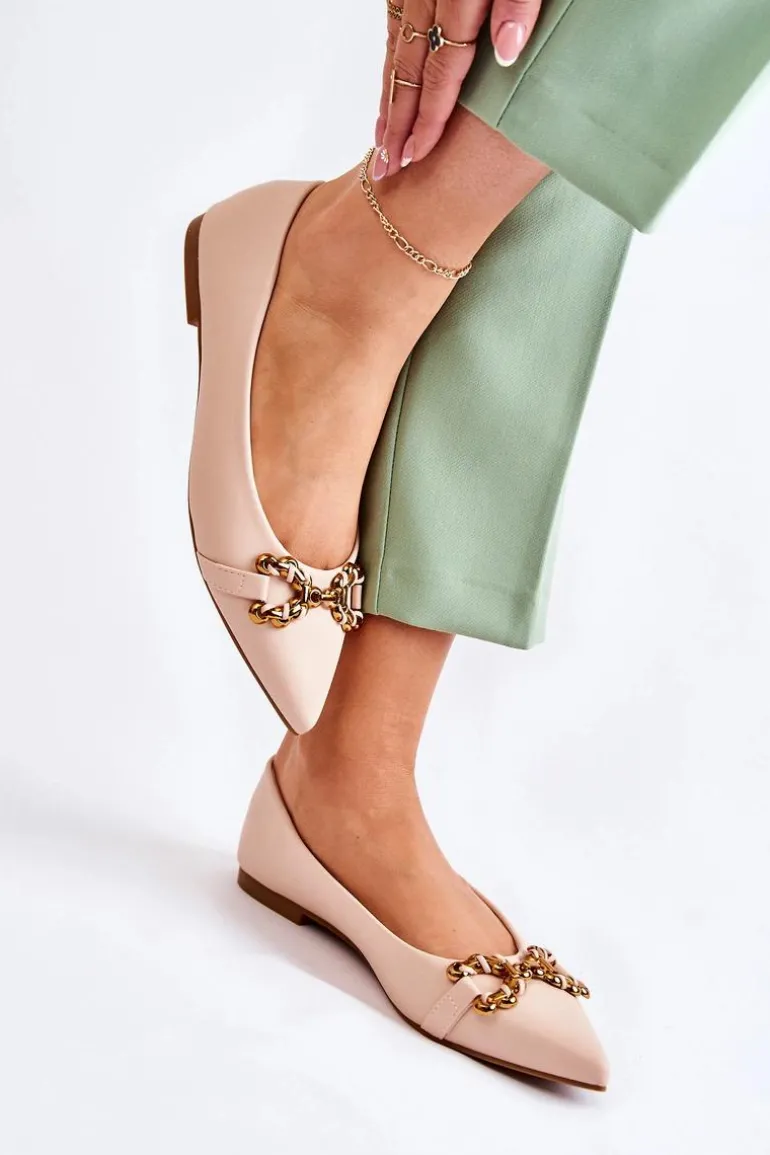 Damskie Skórzane Baleriny W Szpic Z Ozdobą Beżowe Carlos