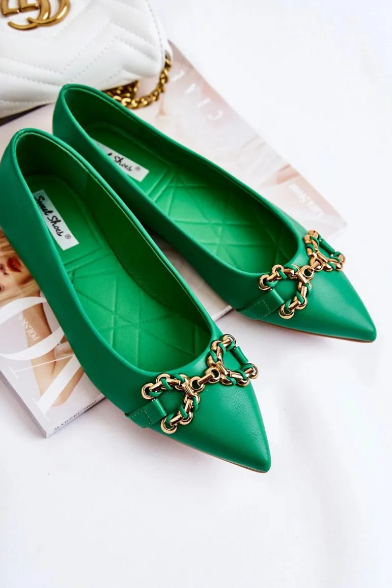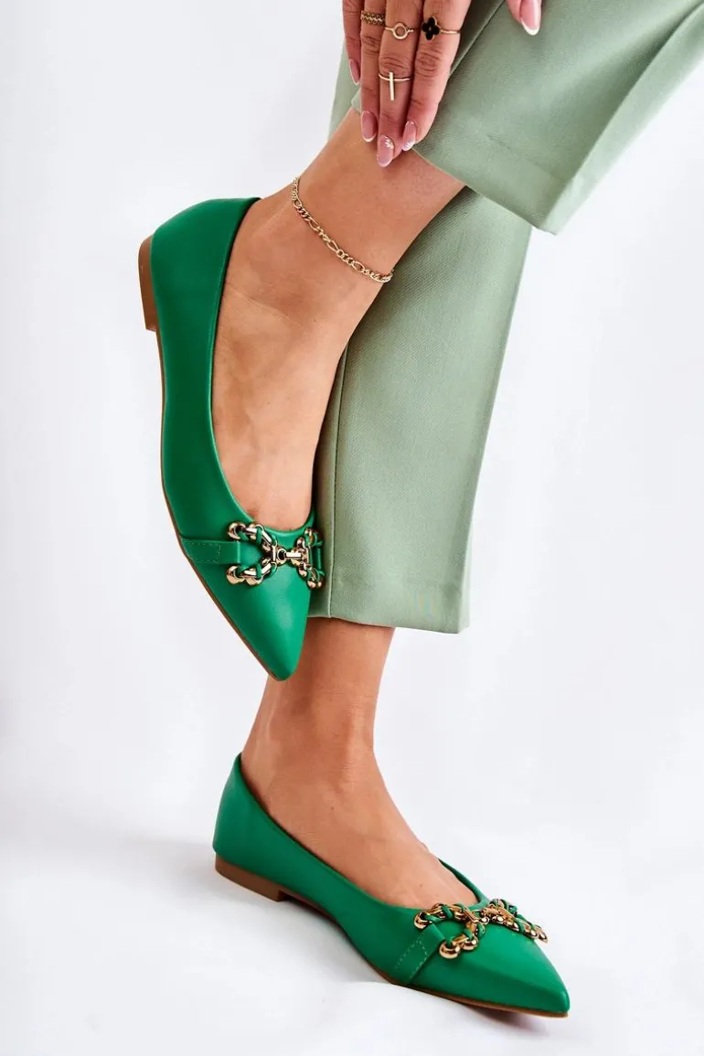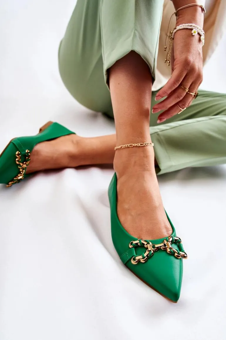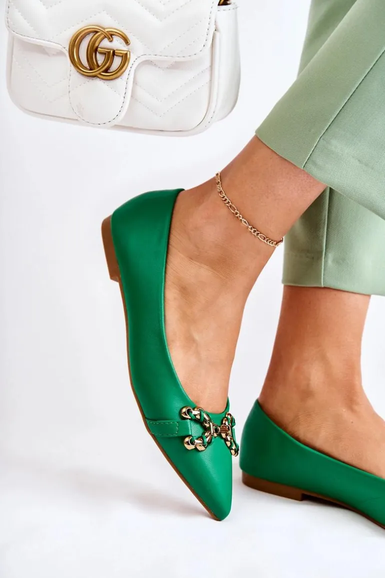 Damskie Skórzane Baleriny W Szpic Z Ozdobą Zielone Carlos