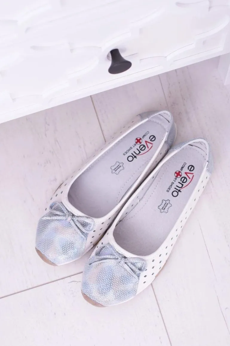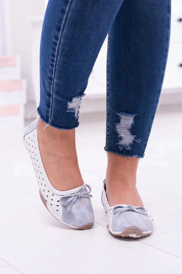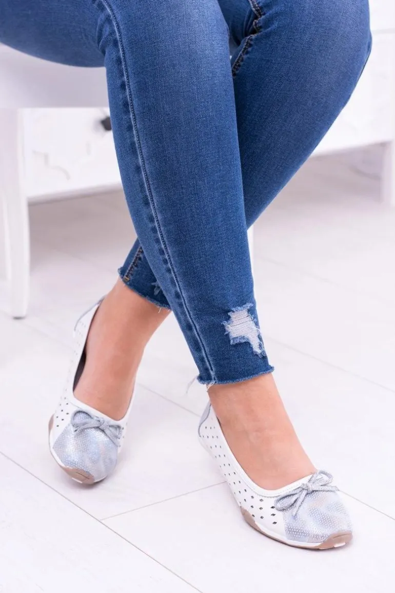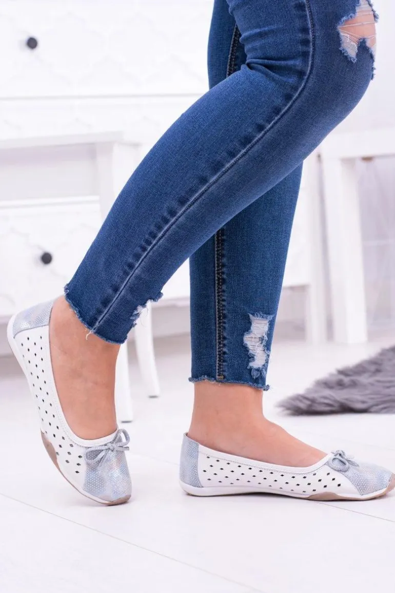 Damskie Skórzane Białe Ażurowe Balerinki Erdola