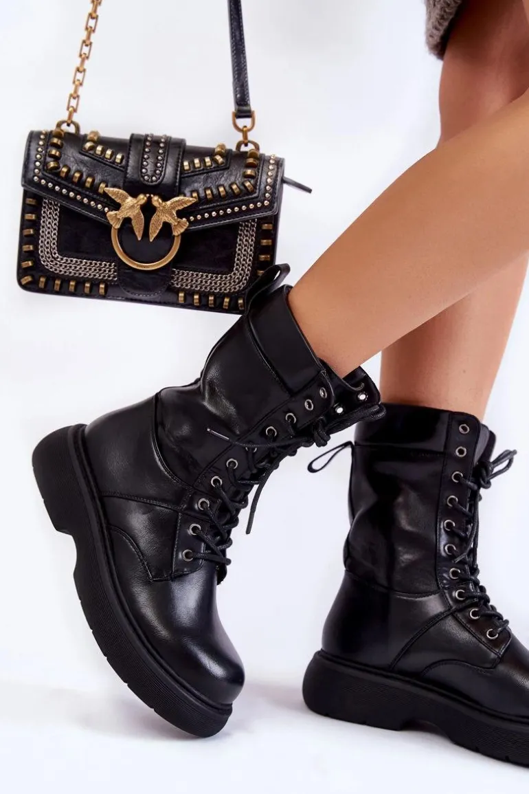 Damskie botki o fasonie glanów zostały wykonane z eko skóry. Model ten posiada klasyczne sznurowanie umożliwiające odpowiednie dopasowanie do tęgości nogi. Dodatkowo zapiętek w tym obuwiu jest usztywniany. Botki osadzono na płaskim obcasie i platformie. Idealny model dla fanów klasycznych glanów! Nie zastanawiaj się dłużej i kup już dziś! Przy wyborze rozmiaru prosimy sugerować się tabelą rozmiarów.