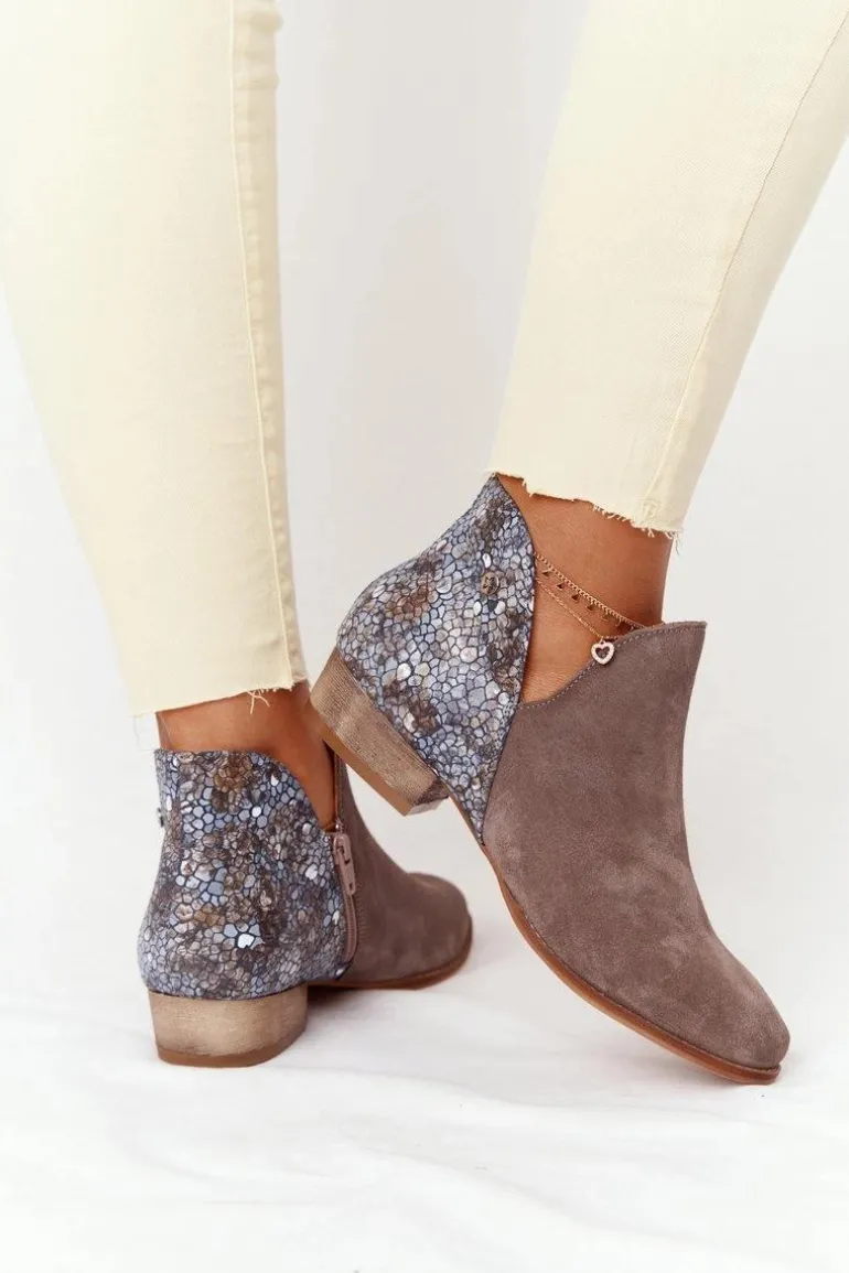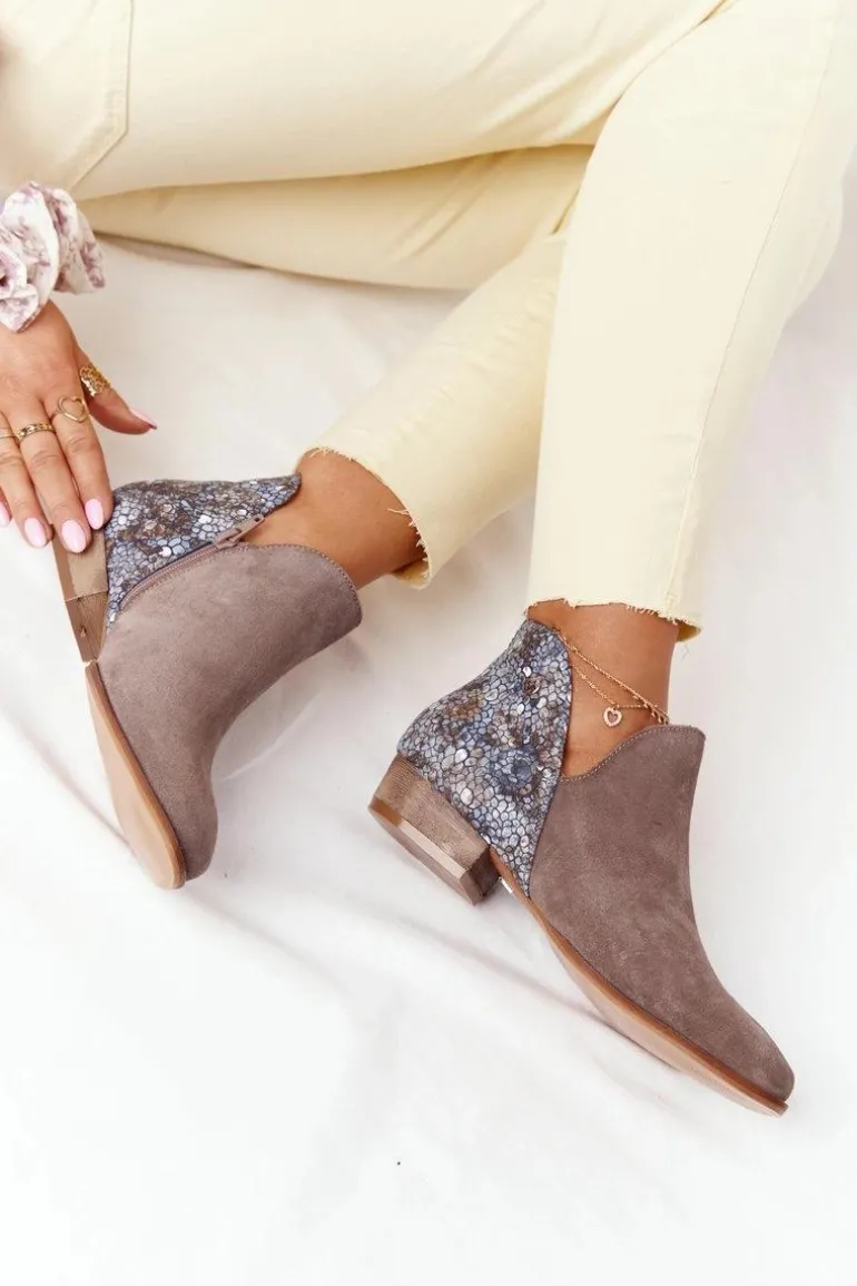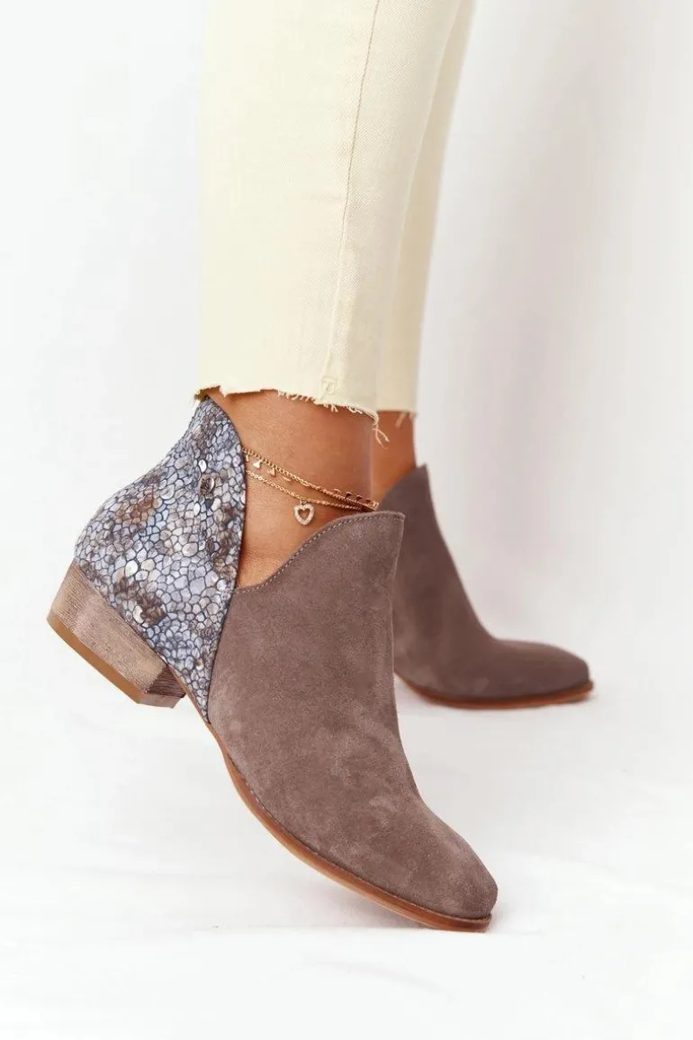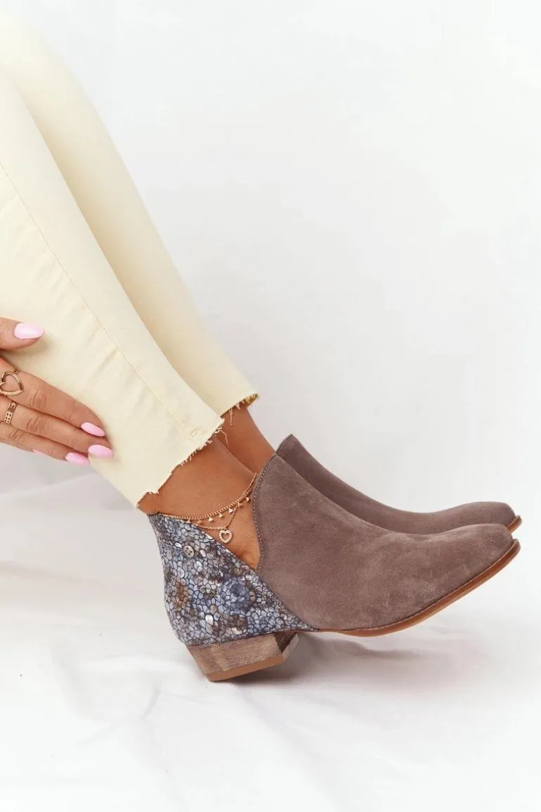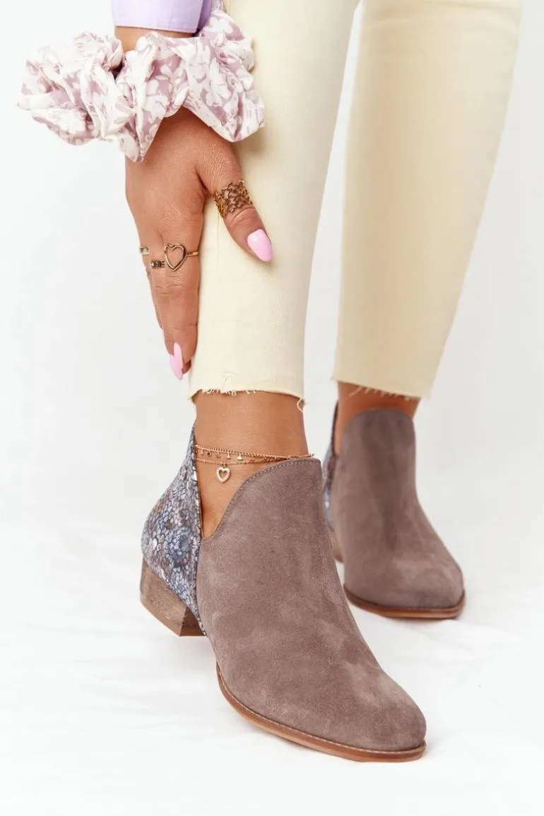 Damskie Skórzane Botki Maciejka Ciemny Beż 04091-65