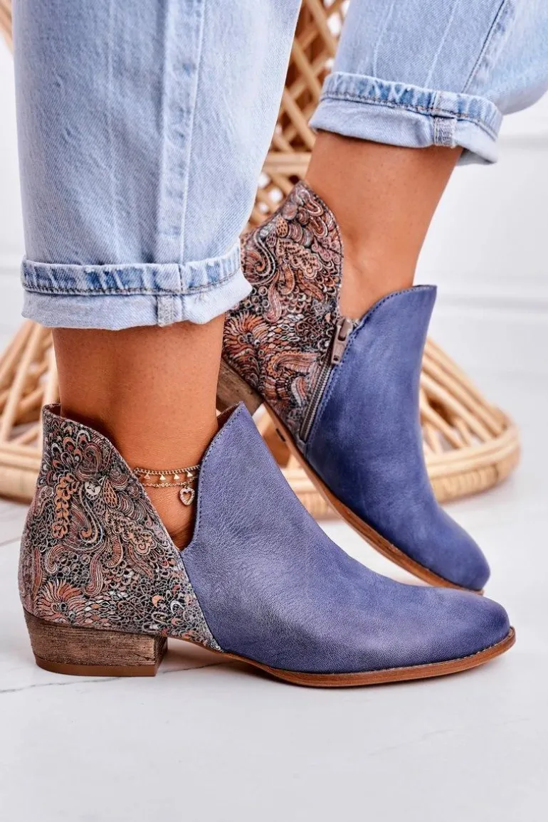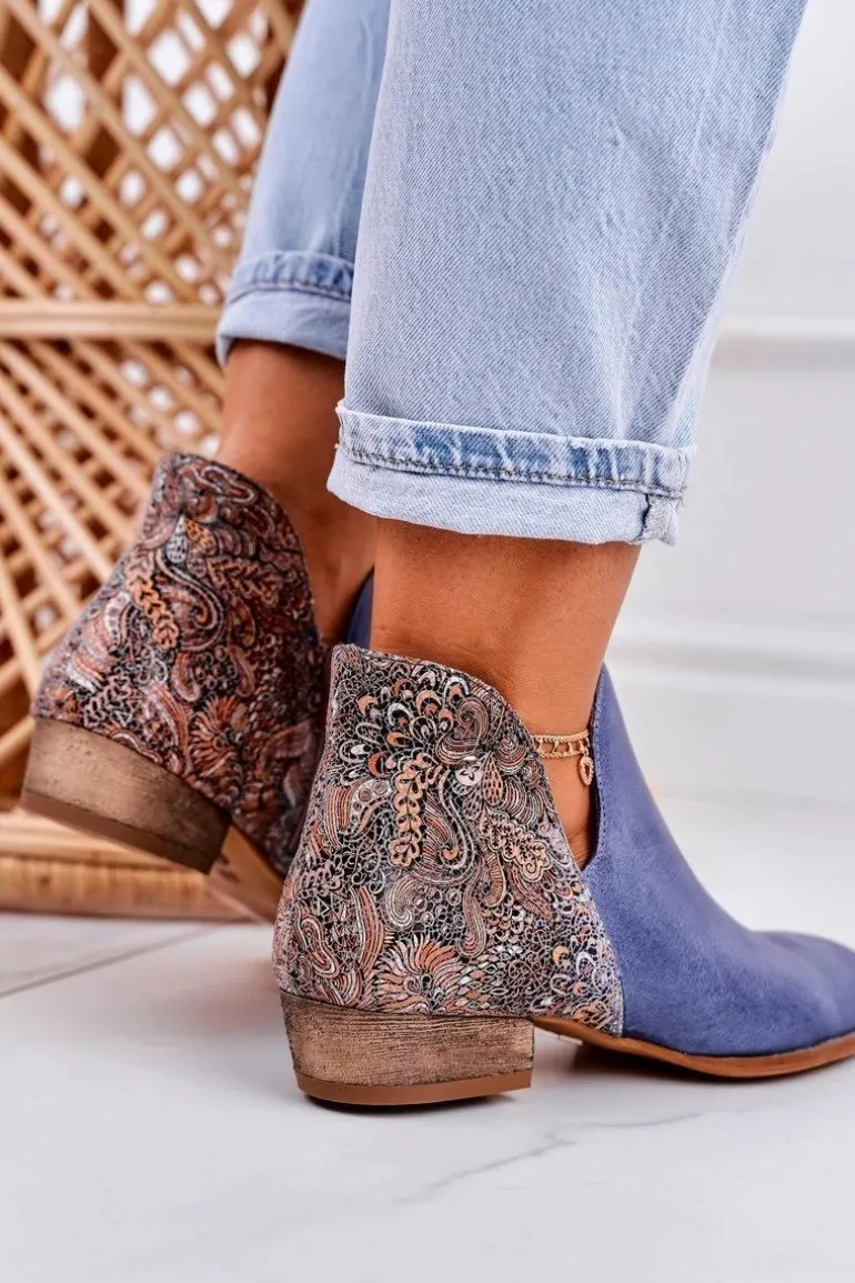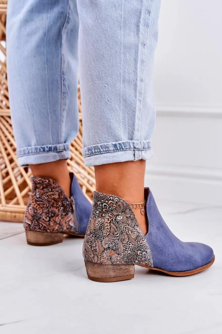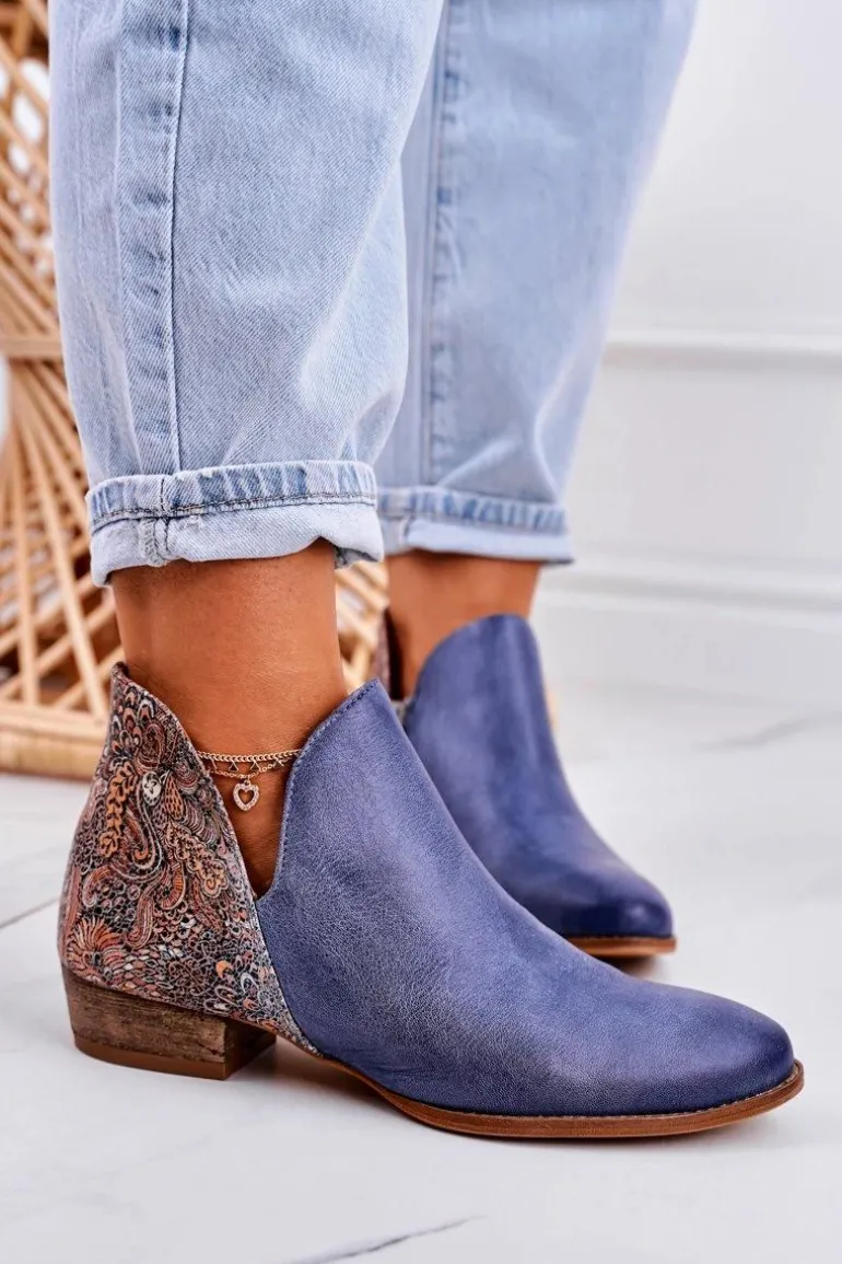 Damskie Skórzane Botki Maciejka Granatowe 04091-27