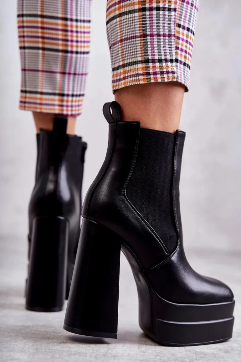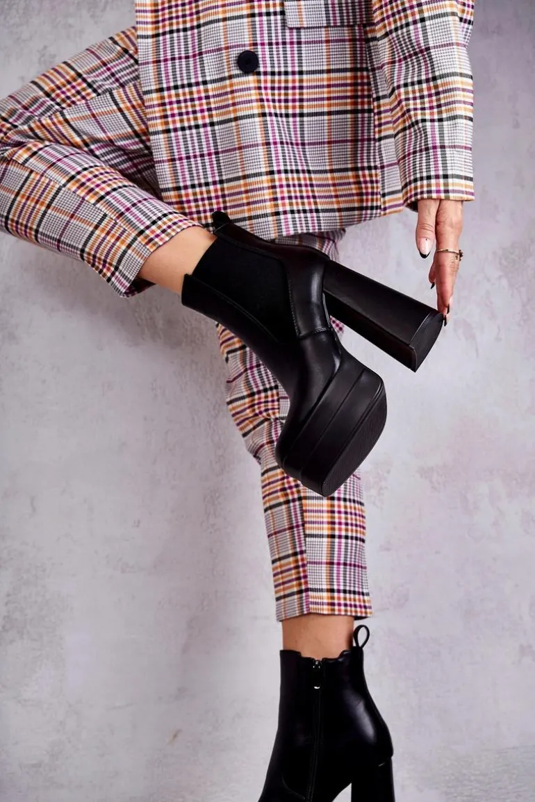 Te botki to prawdziwy HIT! Koniecznie musisz je mieć! Osadzone na modnym, szerokim obcasie w postaci słupka oraz platformie. Wykonane z eko skóry z elastyczną wstawką. Cholewka zapinana na suwak. Nosek kwadratowy. Dodatkowo botki te posiadają usztywniany zapiętek. Nie czekaj dłużej i kup je już teraz! Przy wyborze rozmiaru prosimy sugerować się tabelą rozmiarów.