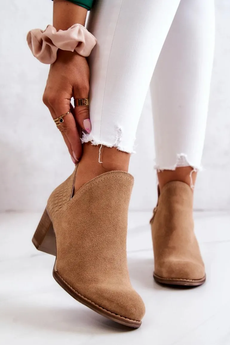 Damskie Skórzane Botki Na Słupku Camel Larsa
