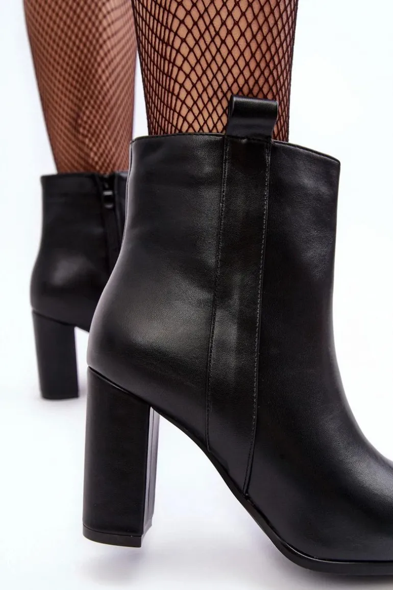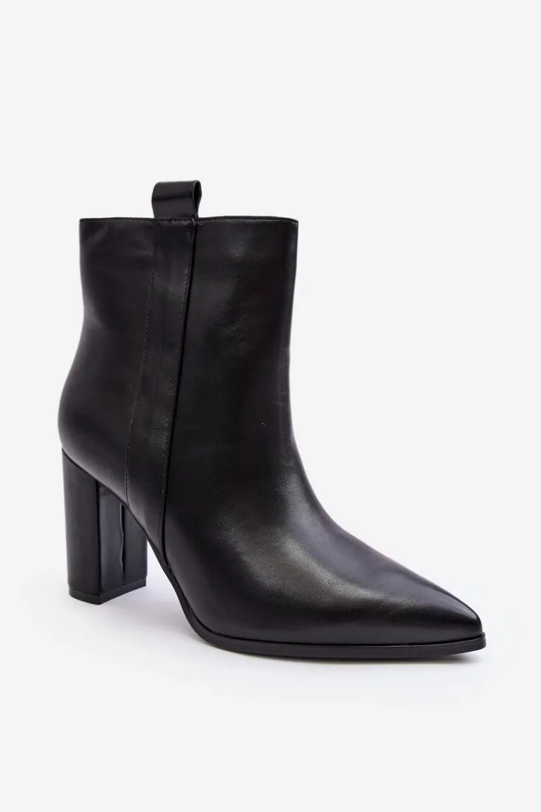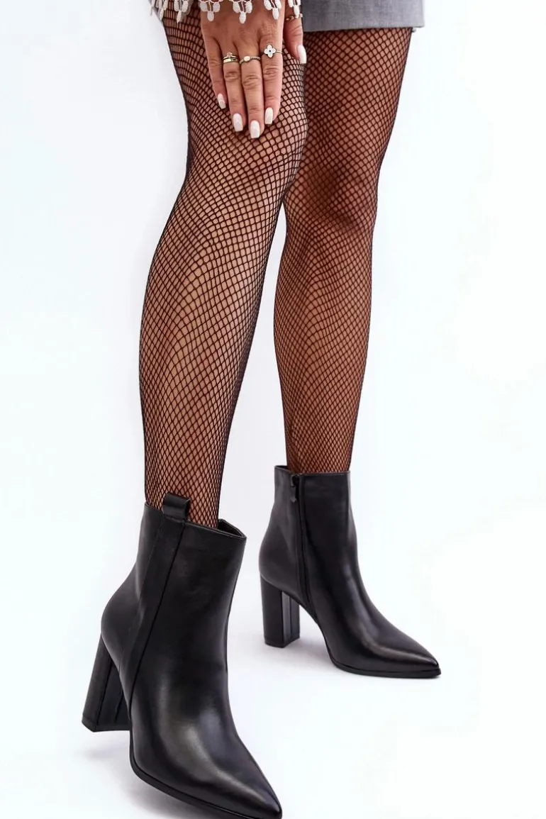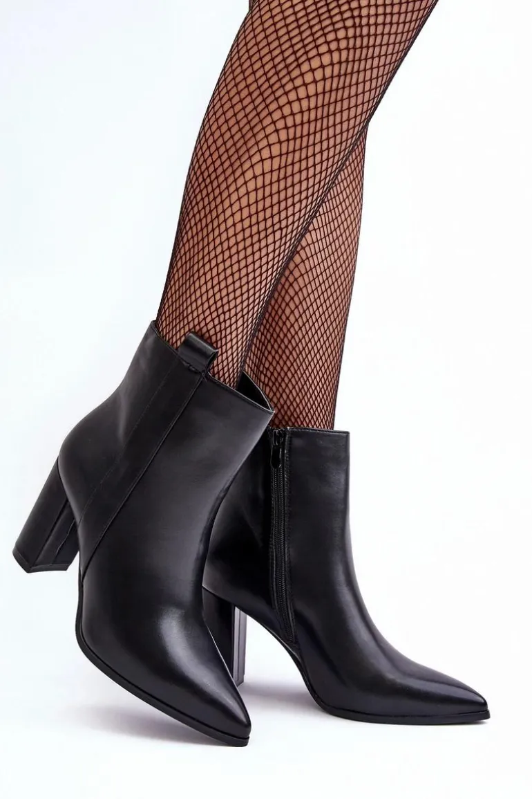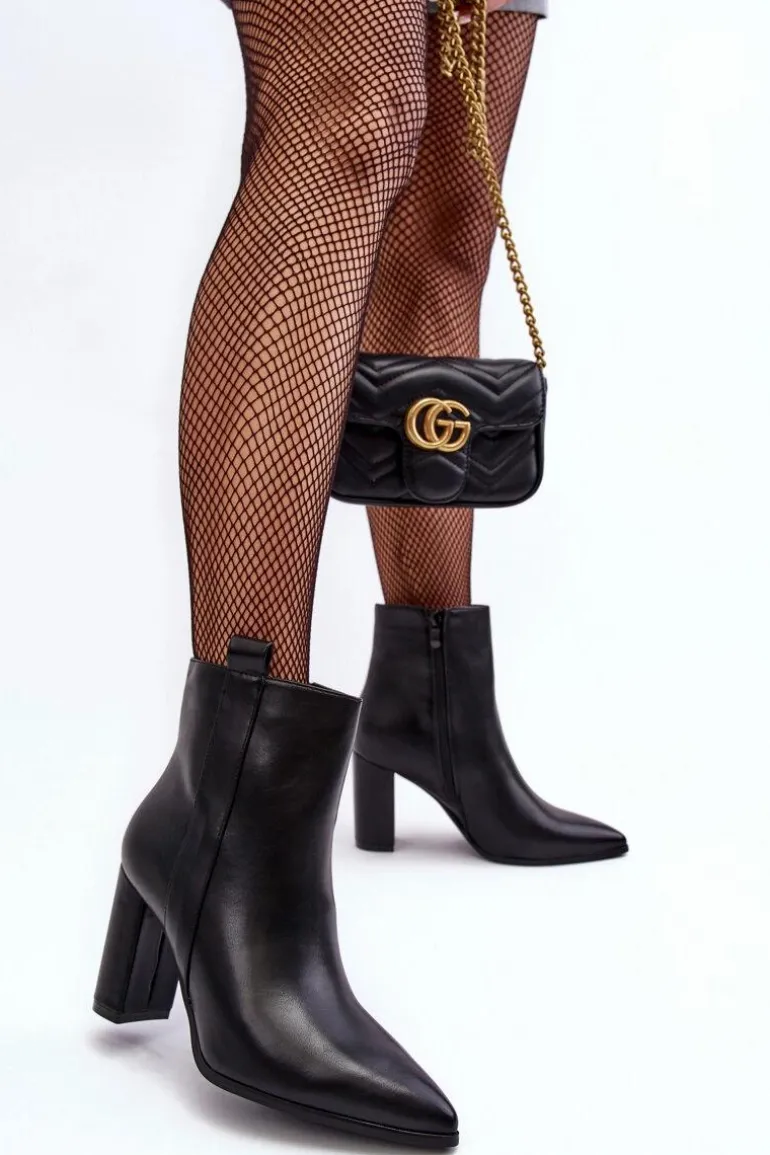 Botki damskie wykonane z eko skóry. Ocieplone kocem obuwniczym. Obcas w postaci stabilnego słupka. Noski w szpic optycznie wysmuklą nogi. Cholewka zapinana suwakiem z boku. Idealne do wielu stylizacji np.: do sukienek, spódnic czy spodni. Te botki koniecznie powinny znaleźć się w Twojej szafie! Przy wyborze rozmiaru prosimy sugerować się tabelą rozmiarów.