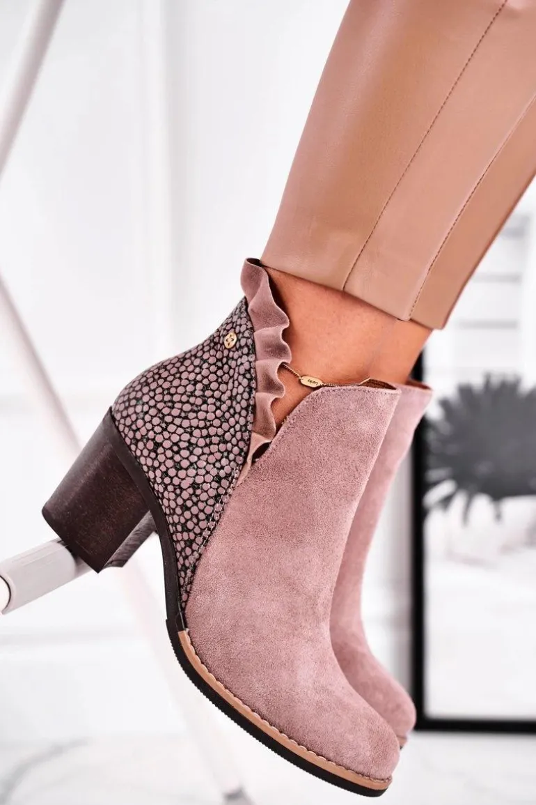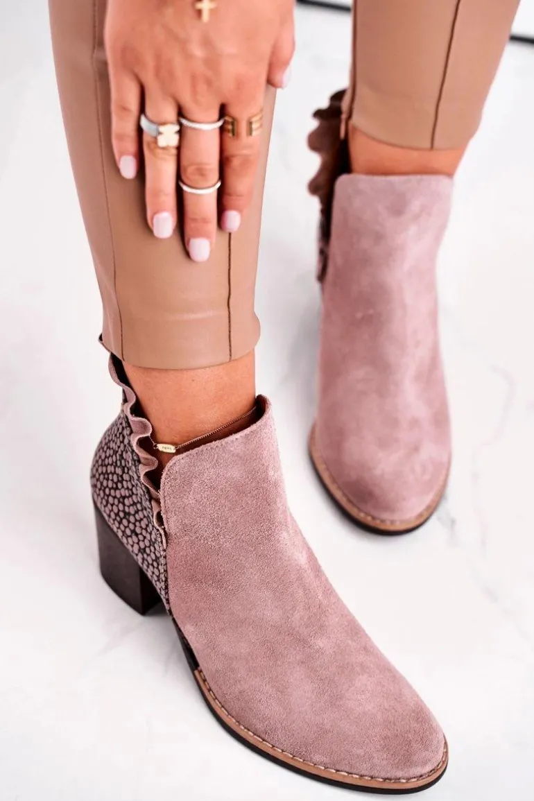 Damskie Skórzane Botki Na Słupku Maciejka Beżowe 04833-04