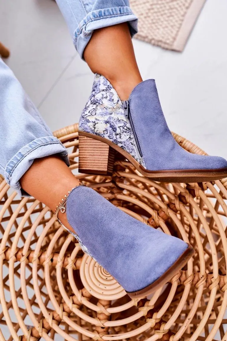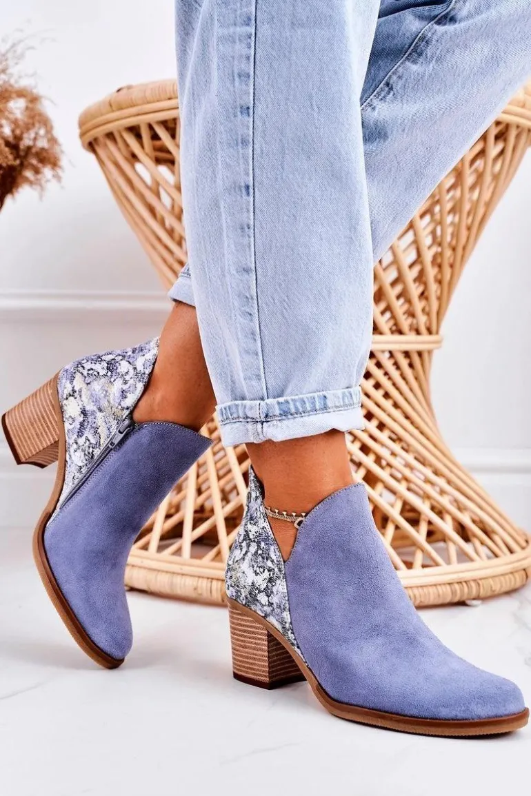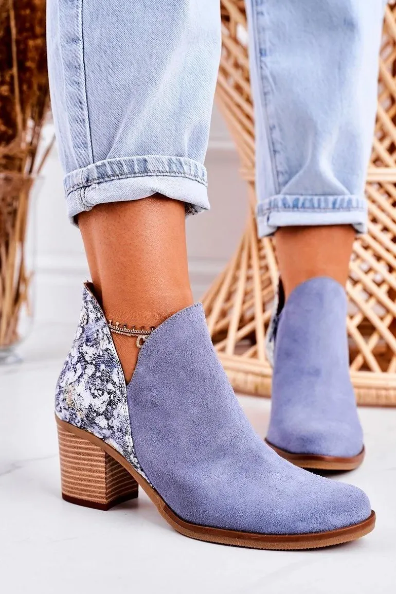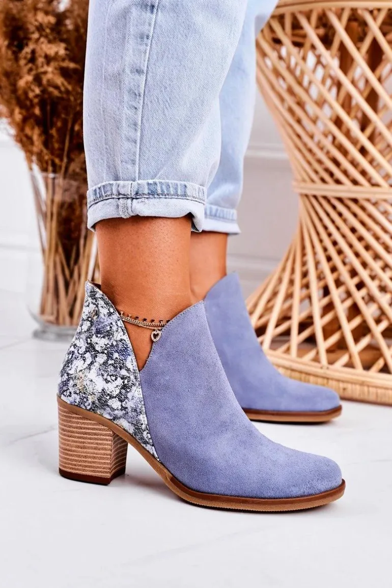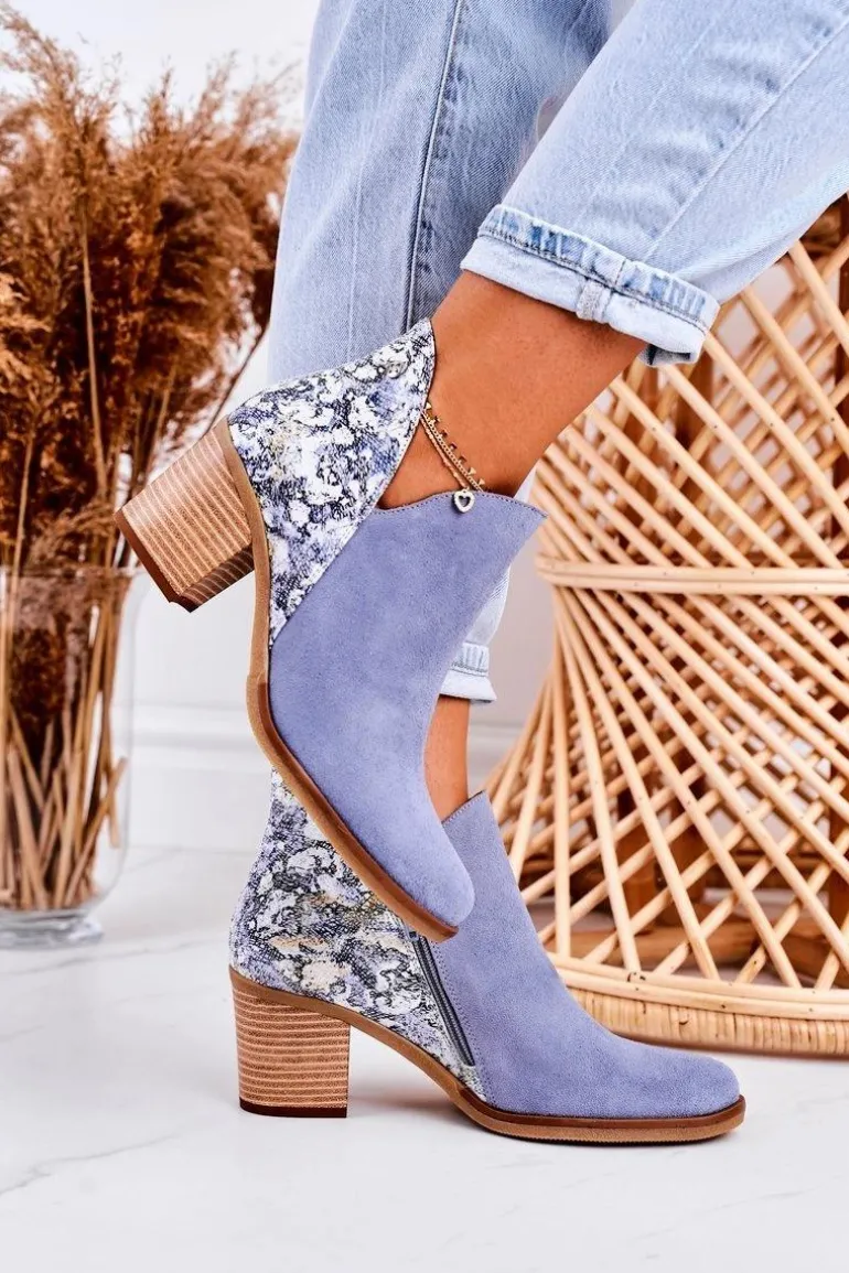 Damskie Skórzane Botki Na Słupku Maciejka Jasny Niebieski 04492