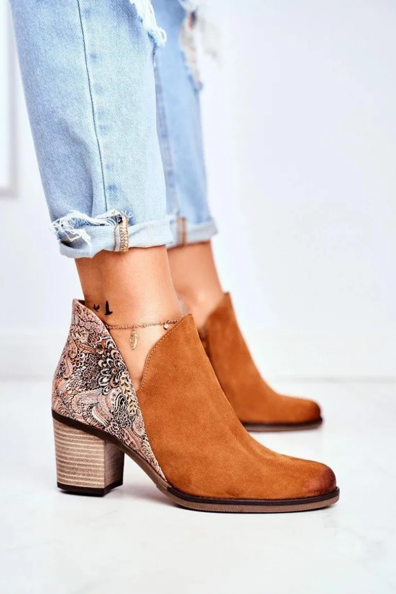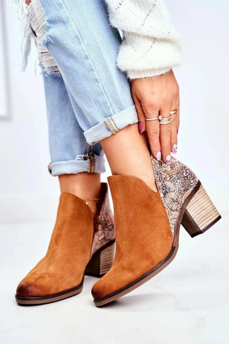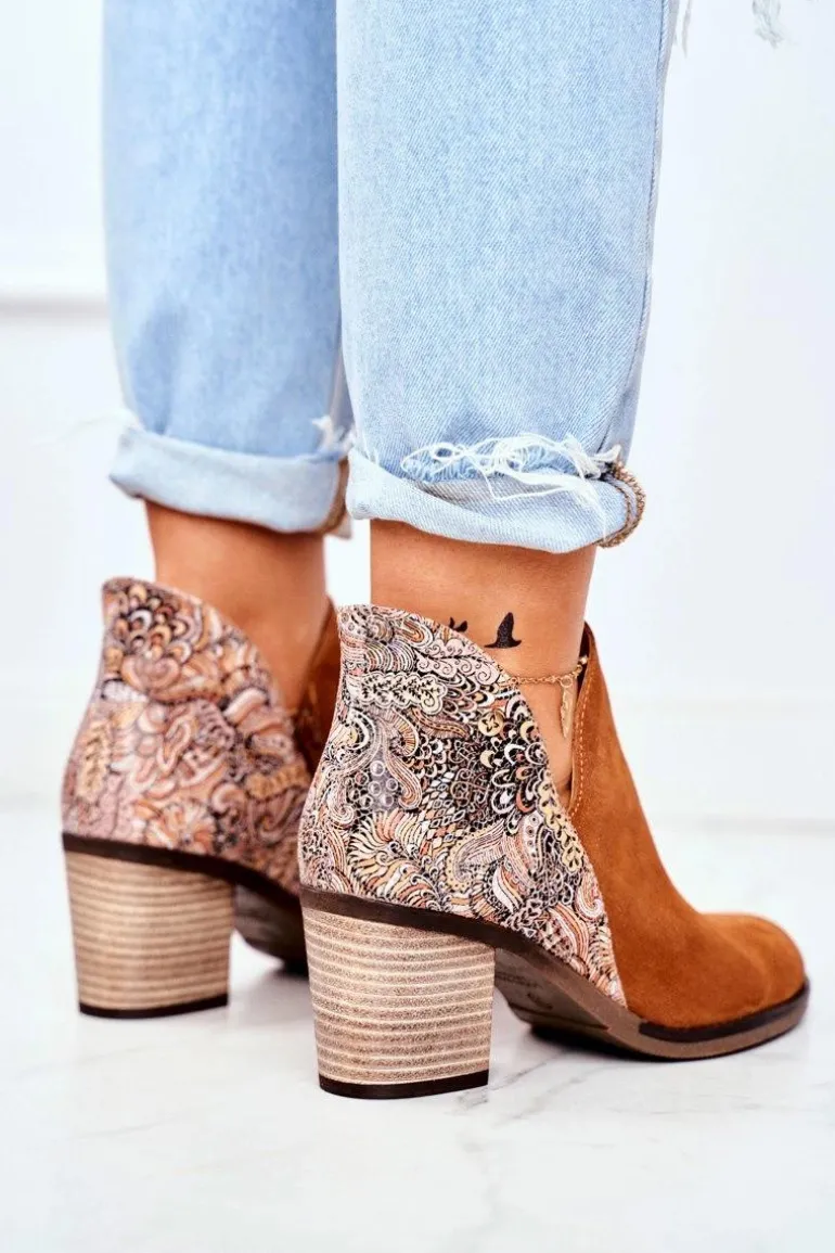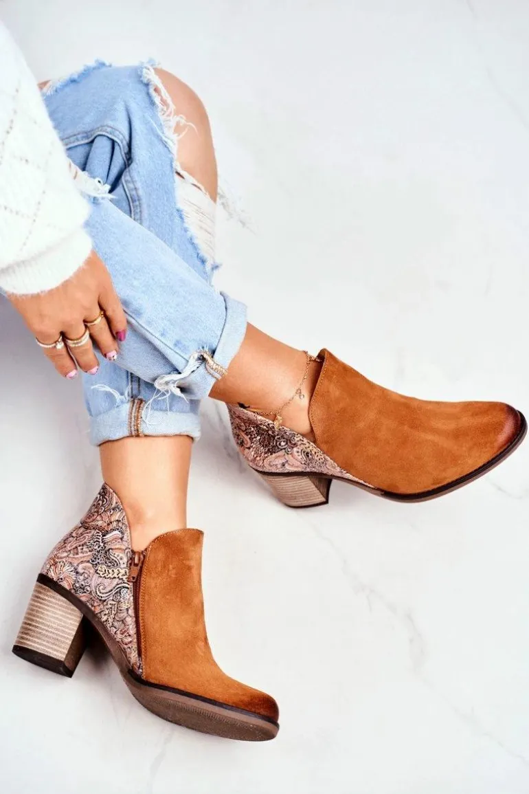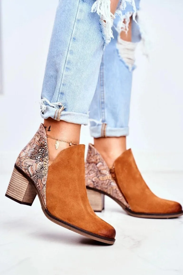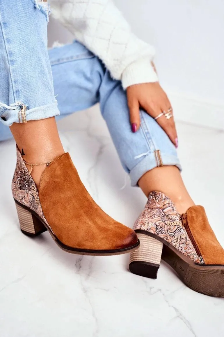 Damskie Skórzane Botki Na Słupku Maciejka Rude 04492-29