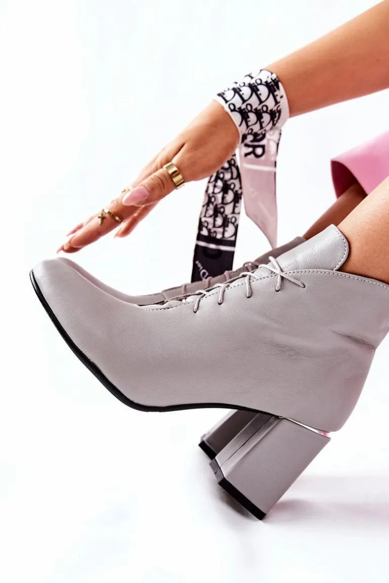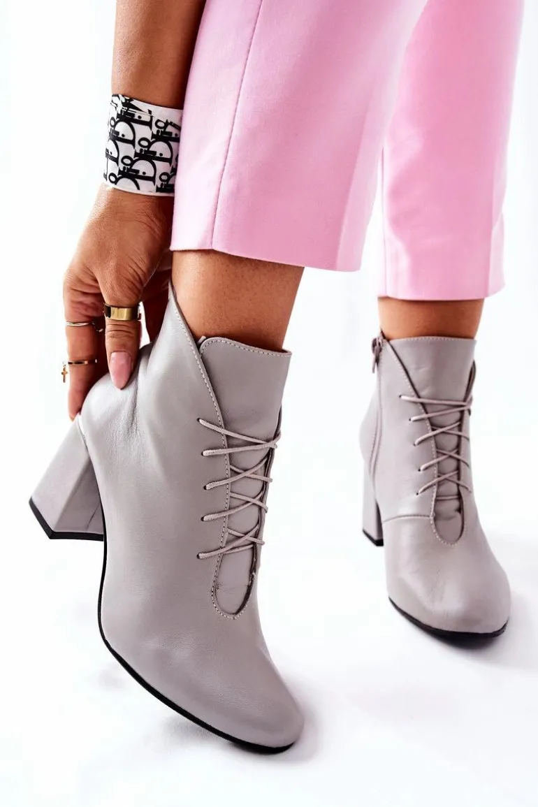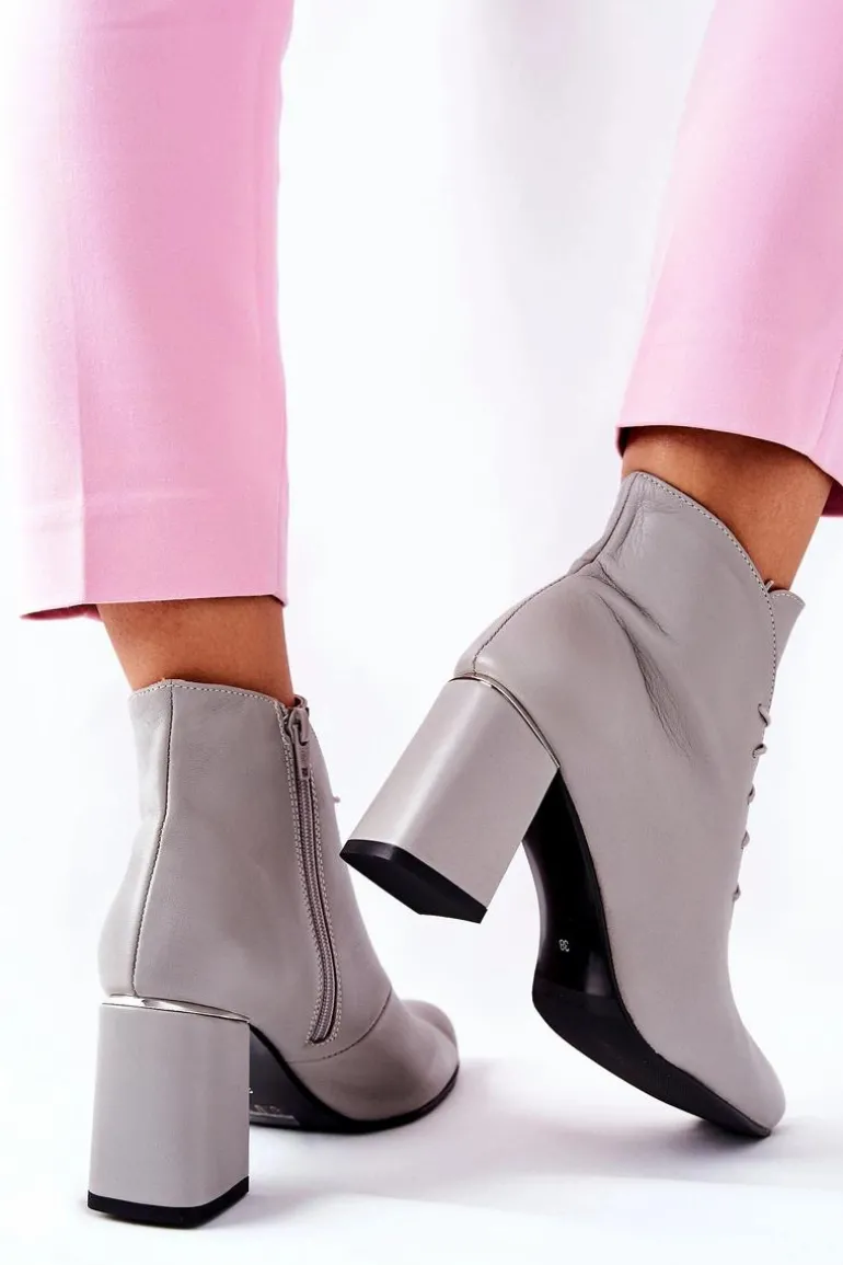 Damskie Skórzane Botki Na Słupku Szare Carrice