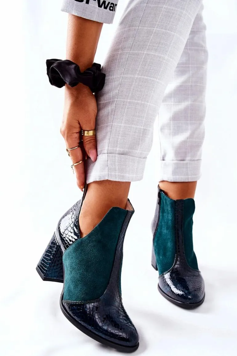 Damskie Skórzane Botki Na Słupku Zielone I Wish