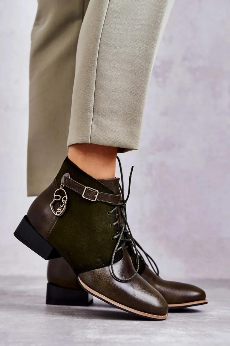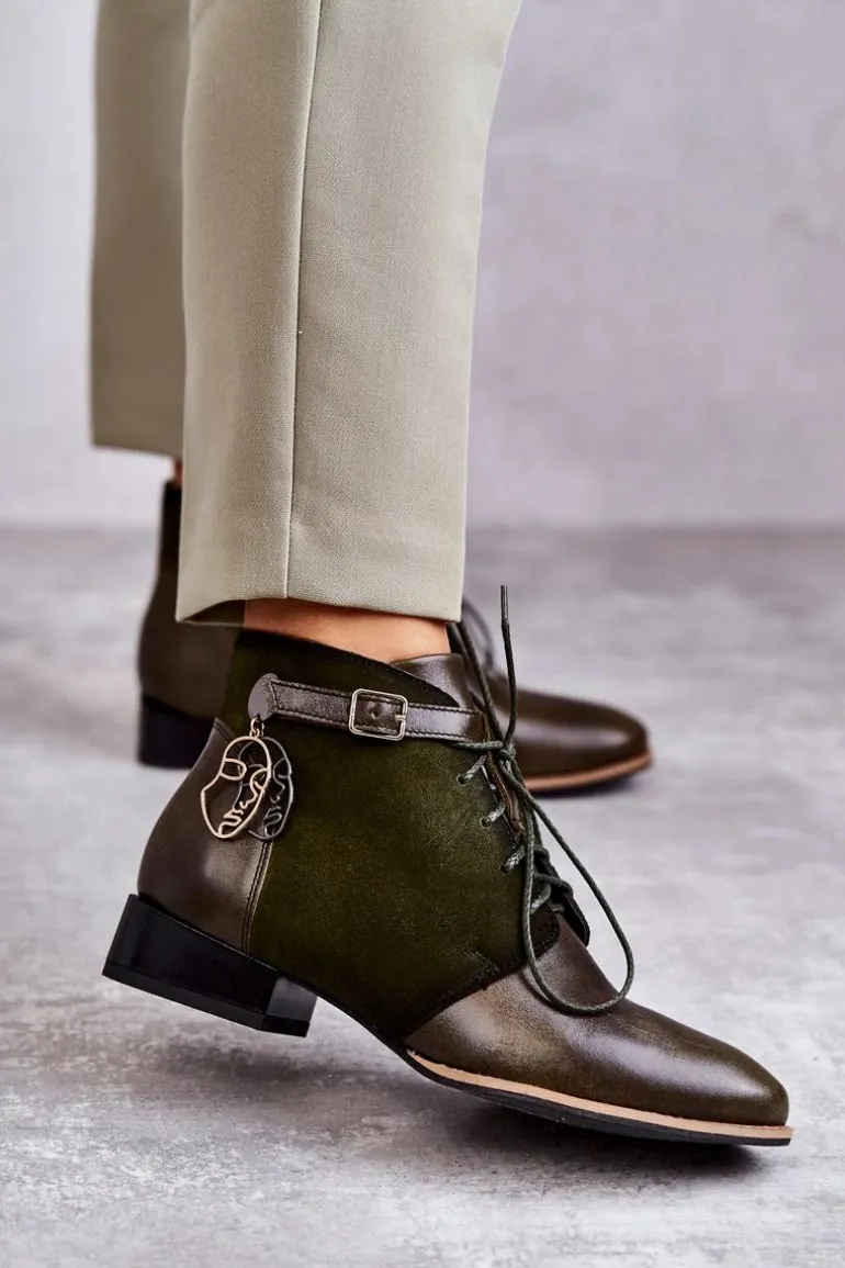 Świetne trzewiki od renomowanej marki Maciejka. Wykonane z najwyższej jakości skór naturalnych. Dodatkowo z boku cholewki znajduje się regulowany pasek oraz elementy w kształcie twarzy. Model klasycznie sznurowany z dodatkowym suwakiem. Botki zostały osadzone na płaskim obcasie. Środek został ocieplony miłym w dotyku kocem obuwniczym. Przy wyborze rozmiaru prosimy sugerować się tabelą rozmiarów.