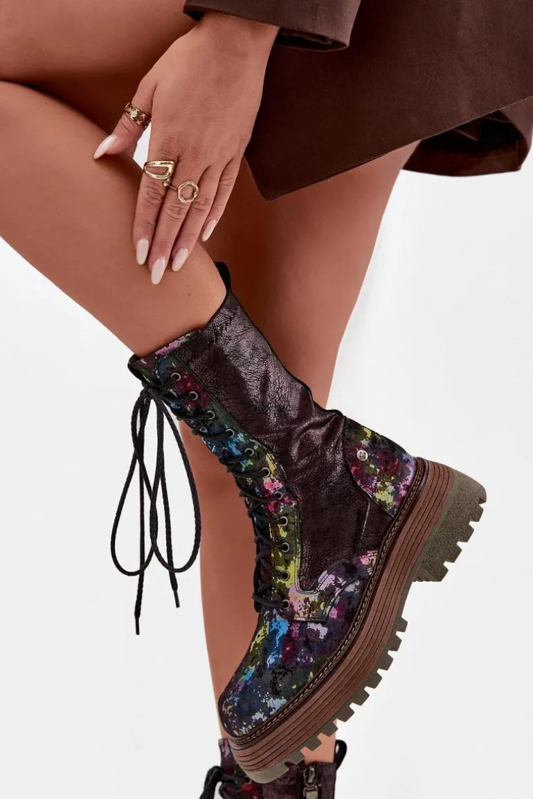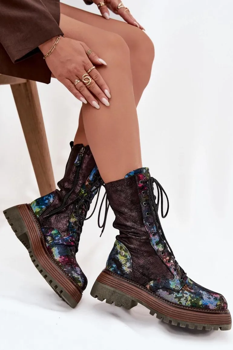 Botki damskie marki Maciejka to wyjątkowe obuwie wykonane z najwyższej jakości skóry naturalnej, co gwarantuje trwałość i stylowy wygląd. Model ten osadzony jest na płaskim obcasie i platformie. Miękka wkładka zapewni komfort nawet podczas długotrwałego użytkowania. Workery zostały zaprojektowane z praktycznym suwakiem po wewnętrznej stronie cholewki, oraz dodatkowo posiadają sznurowanie. Botki te są nie tylko praktyczne, ale również eleganckie, doskonale nadają się do wielu stylizacji! Przy wyborze rozmiaru prosimy sugerować się tabelą rozmiarów.