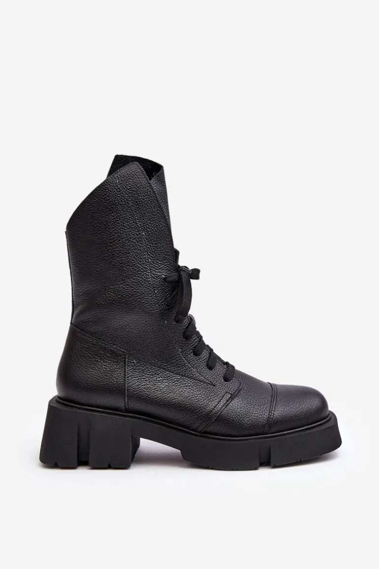Botki damskie wykonane ze skóry naturalnej. Osadzona na masywnym, płaskim obcasie oraz platformie. Zapinane na suwak. Z przodu sznurowanie. Zapiętek jest usztywniony. Miękka wkładka zapewni komfort podczas użytkowania. Noski zaokrąglone. Ten modny model będzie pasować do wielu jesienno-zimowych stylizacji! Przy wyborze rozmiaru prosimy sugerować się tabelą rozmiarów.