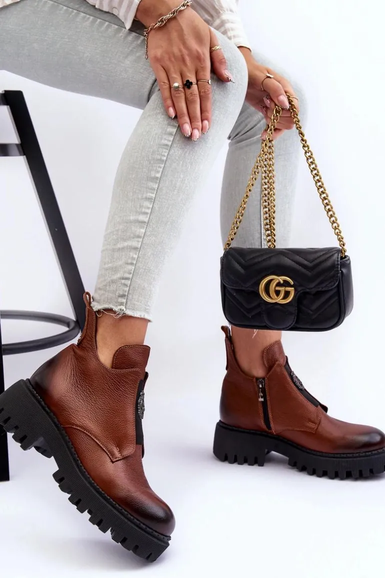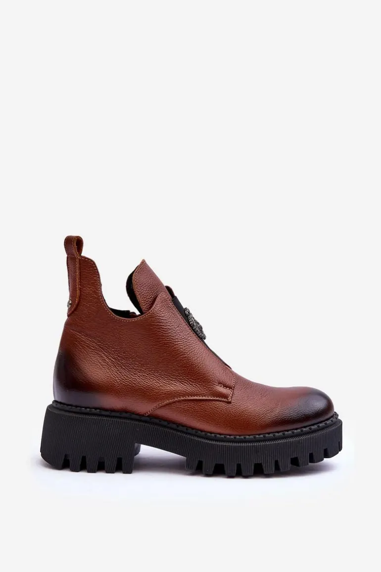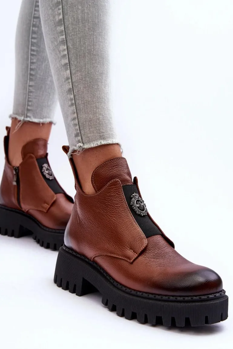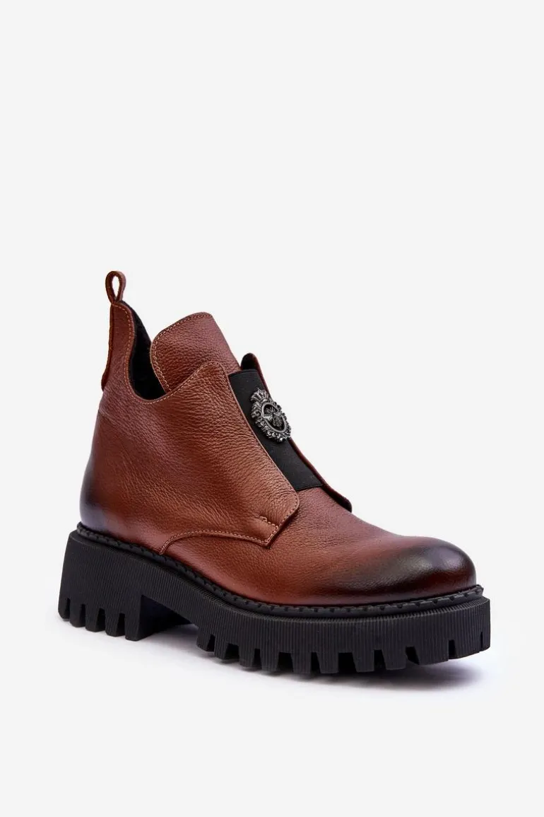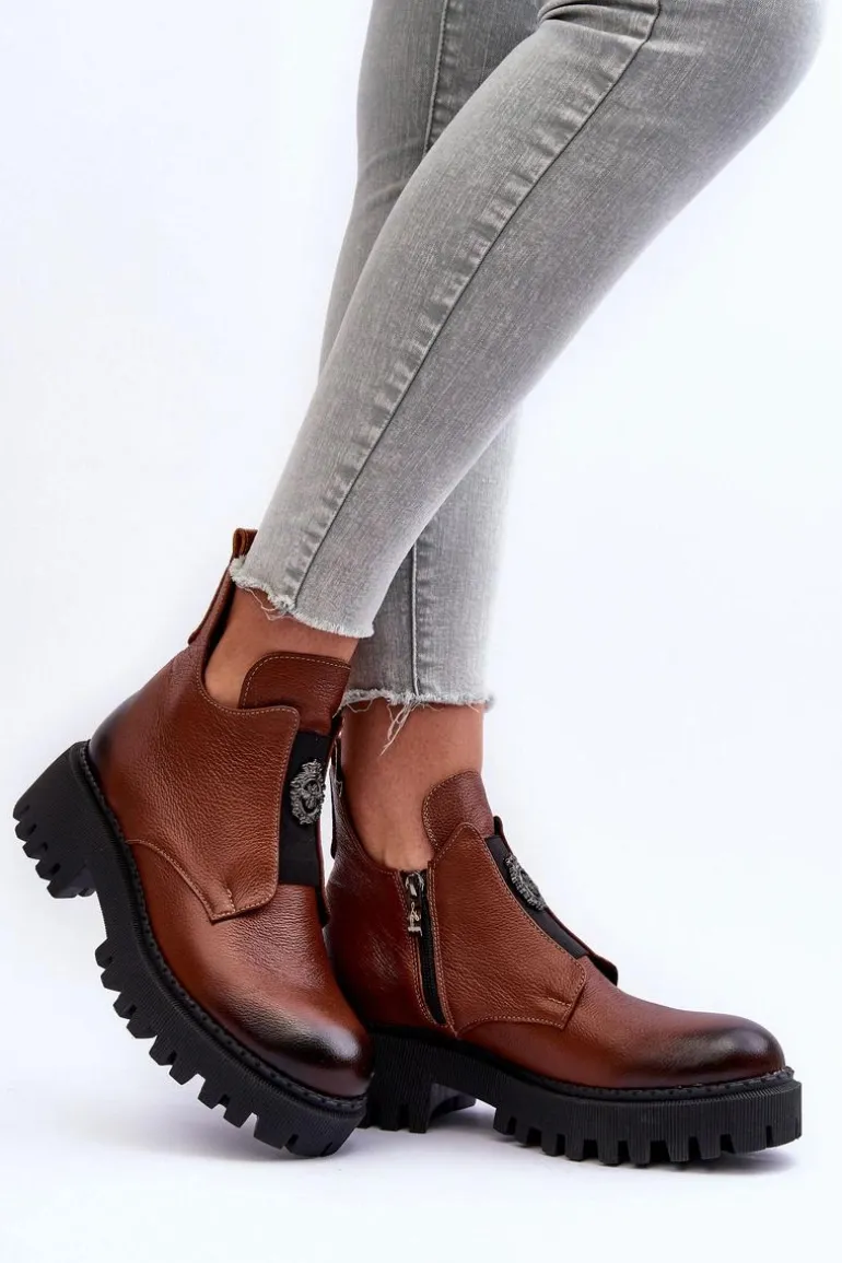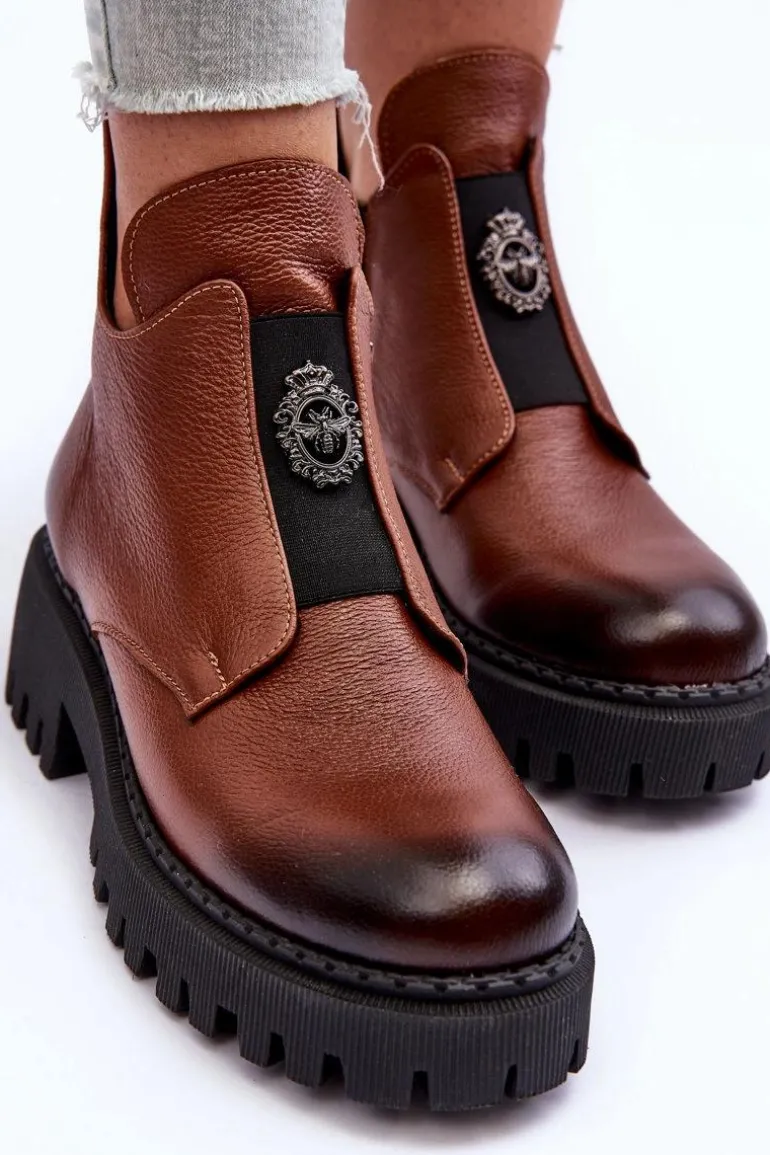 Damskie Skórzane Botki Z Ozdobą Brązowe Lemar Lusanna