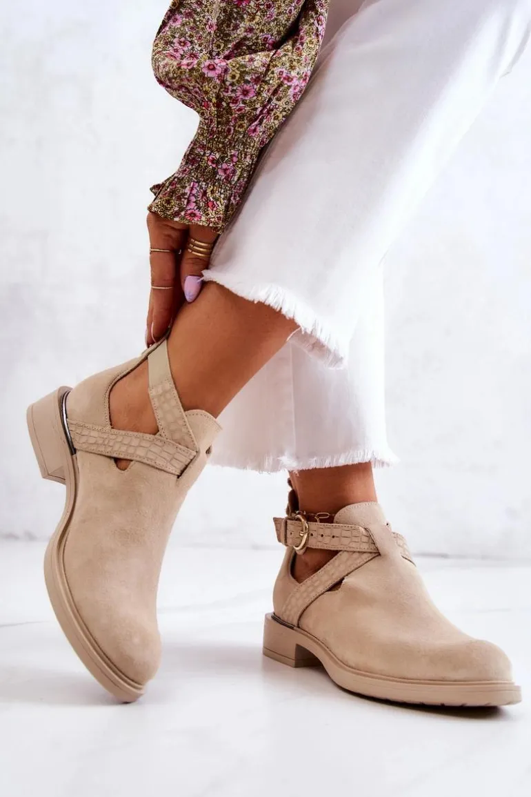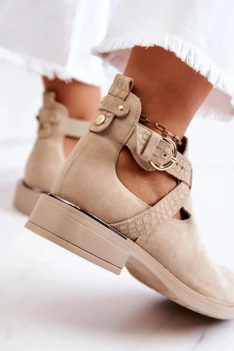Cudne botki wykonane z naturalnej zamszowej skóry. Wkładka wykonana z naturalnej skóry, co sprawia, że są bardzo komfortowe podczas użytkowania. Z boku cholewki znajdują się wycięcia oraz regulowany pasek zapinany na sprzączkę. Plaski obcas zapewnia stabilizację. Tłoczona faktura oraz modny fason sprawiają, że te buty wyglądają naprawdę wyjątkowo. Nosek w kształcie migdała. Antypoślizgowa podeszwa. Koniecznie sprawdź także pozostałe modele skórzanych butów dostępnych w naszej ofercie! Przy wyborze rozmiaru prosimy sugerować się tabelą rozmiarów.