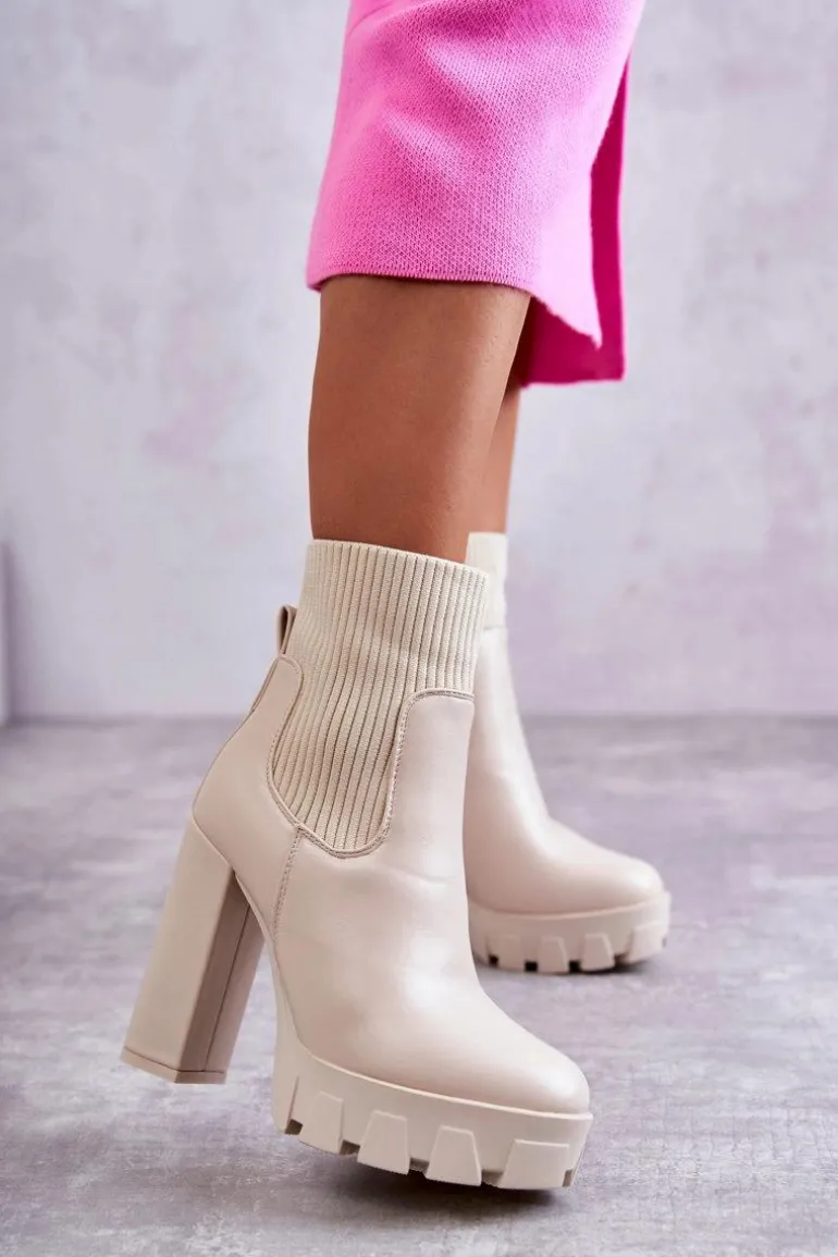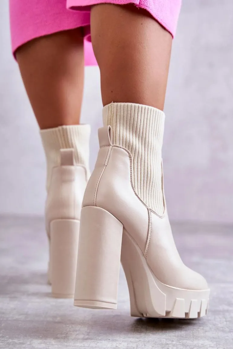 Niezwykłe botki damskie w modnej odsłonie! Posiadają elastyczną cholewkę w formie skarpety połączoną z eko skórą. Osadzone na masywnym obcasie w postaci słupka oraz platformie ze żłobieniami. Wygodny model z wkładką z eko skóry i usztywnianym zapiętkiem, który pozwoli na odpowiednią stabilizację stopy. Ten model powinien być właśnie Twój! Przy wyborze rozmiaru prosimy sugerować się tabelą rozmiarów.