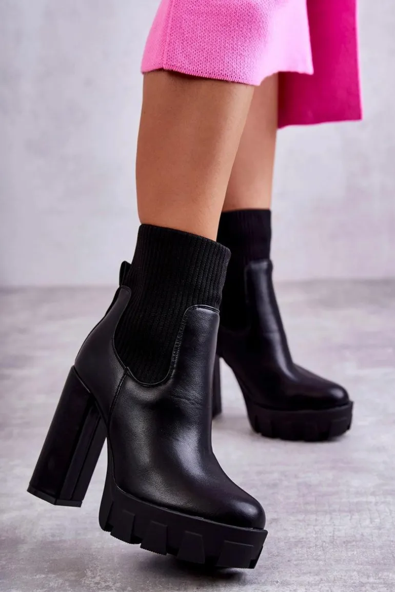 Niezwykłe botki damskie w modnej odsłonie! Posiadają elastyczną cholewkę w formie skarpety połączoną z eko skórą. Osadzone na masywnym obcasie w postaci słupka oraz platformie ze żłobieniami. Wygodny model z wkładką z eko skóry i usztywnianym zapiętkiem, który pozwoli na odpowiednią stabilizację stopy. Ten model powinien być właśnie Twój! Przy wyborze rozmiaru prosimy sugerować się tabelą rozmiarów.