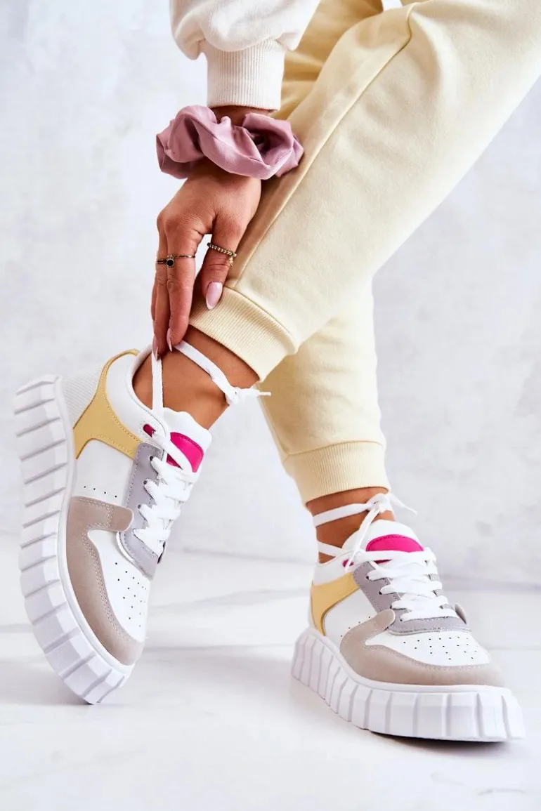 Buty sportowe, które koniecznie musisz mieć! Wykonane z połączenia wysokiej jakości eko skóry oraz eko zamszu. Osadzone na masywnej platformie ze żłobieniami po bokach. Delikatne perforacje z przodu oraz po bokach. Sneakersy posiadają wiązanie na płaskie sznurowadła, dzięki któremu można je idealnie dopasować. Miękka wkładka została wykonana z materiału i jest dodatkowo wyciągana. Koniecznie musisz je mieć w swojej szafie! Przy wyborze rozmiaru prosimy kierować tabelą rozmiarów.