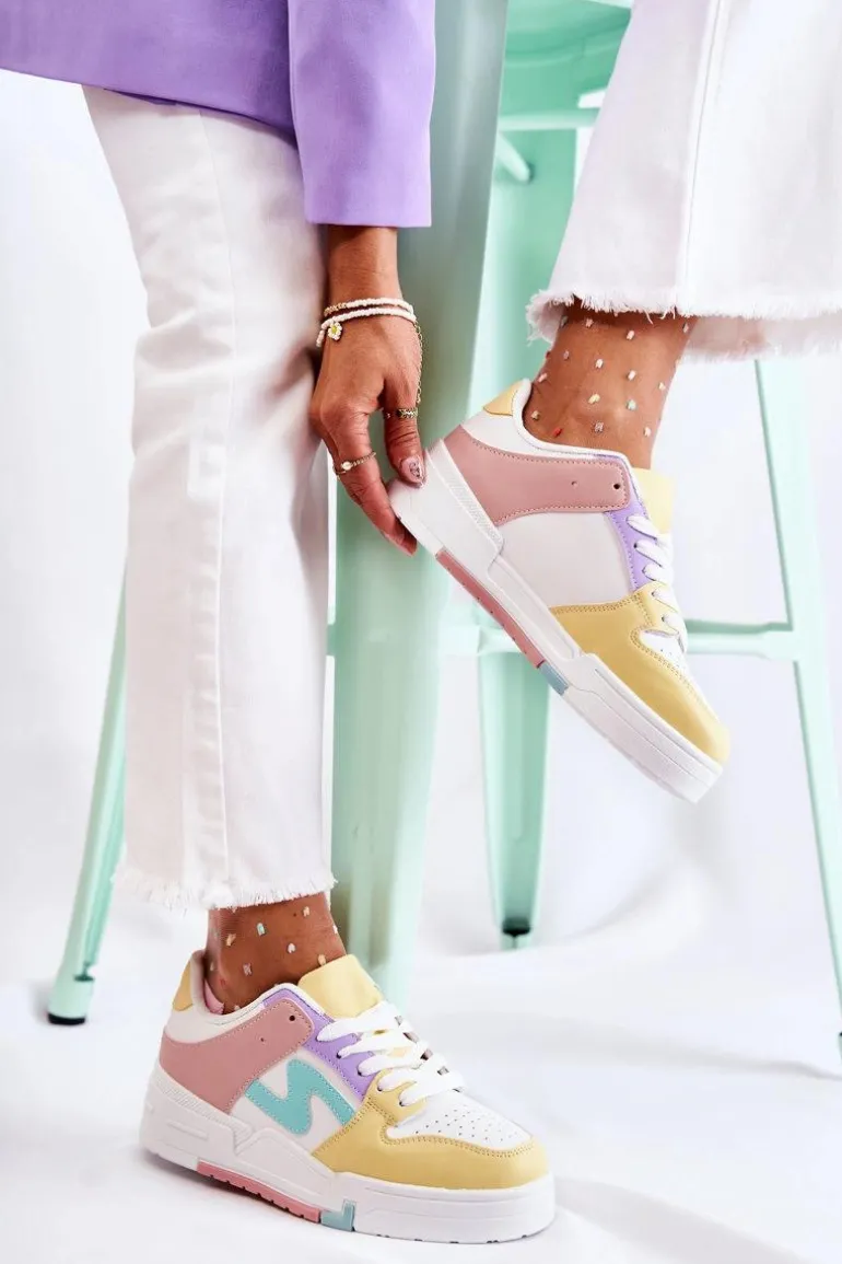 Buty sportowe, które koniecznie musisz mieć! Wykonane z eko skóry. Osadzone na masywnej platformie z wypustkami po bokach. Na przodzie znajduje się delikatna perforacja. Sneakersy posiadają wiązanie na płaskie sznurowadła, dzięki któremu można je idealnie dopasować. Miękka wkładka została wykonana z materiału i jest dodatkowo wyciągana. Model ten świetnie sprawdzi się na co dzień. Przy wyborze rozmiaru prosimy kierować tabelą rozmiarów.