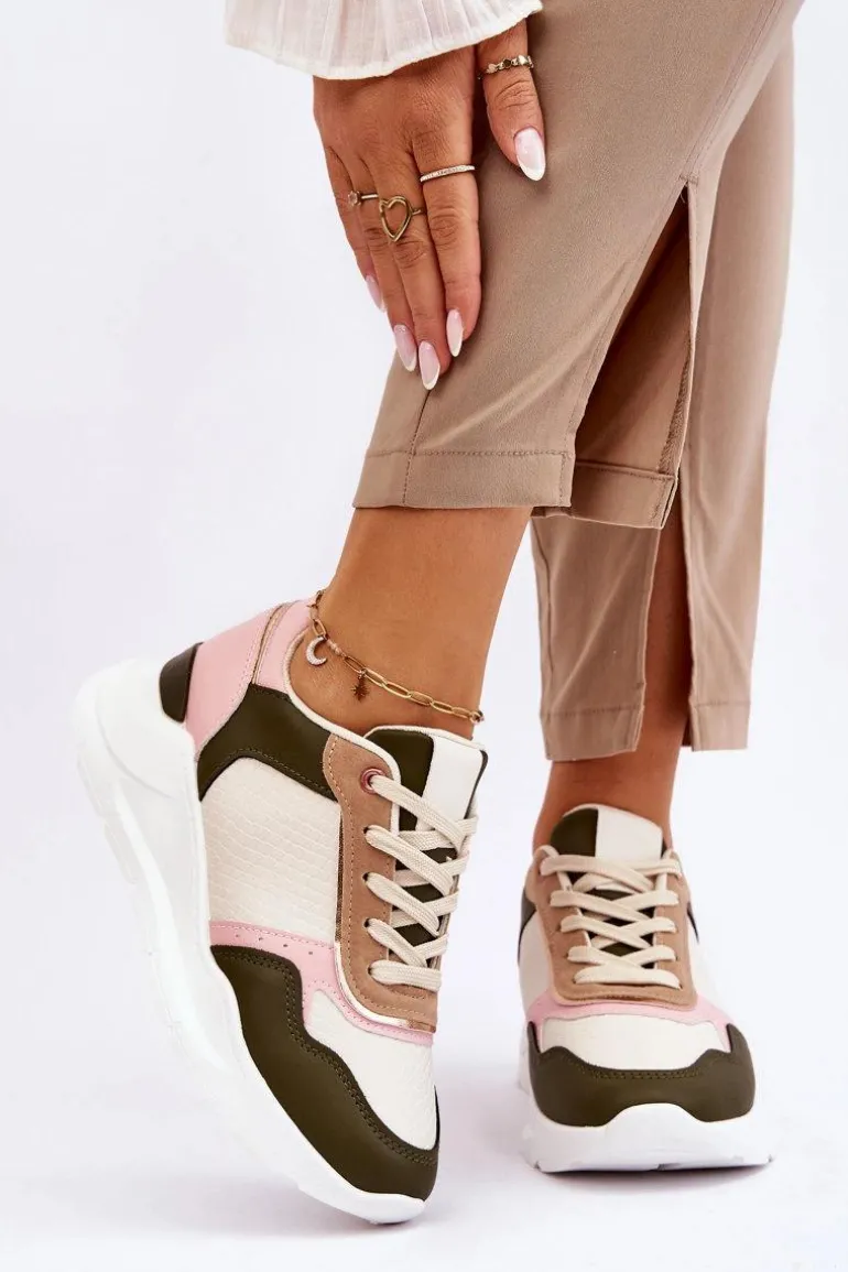 Damskie sneakersy zostały wykonane z eko skóry. Zostały osadzone na masywnej platformie, która delikatnie uniesie Twoją sylwetkę. Model ten posiada klasyczne sznurowanie. Dodatkowo wkładka w tych butach jest wymienna. Świetny fason w modnych kolorach sprawdzi się w wielu stylizacjach! Przy wyborze rozmiaru prosimy kierować się tabelą rozmiarów.