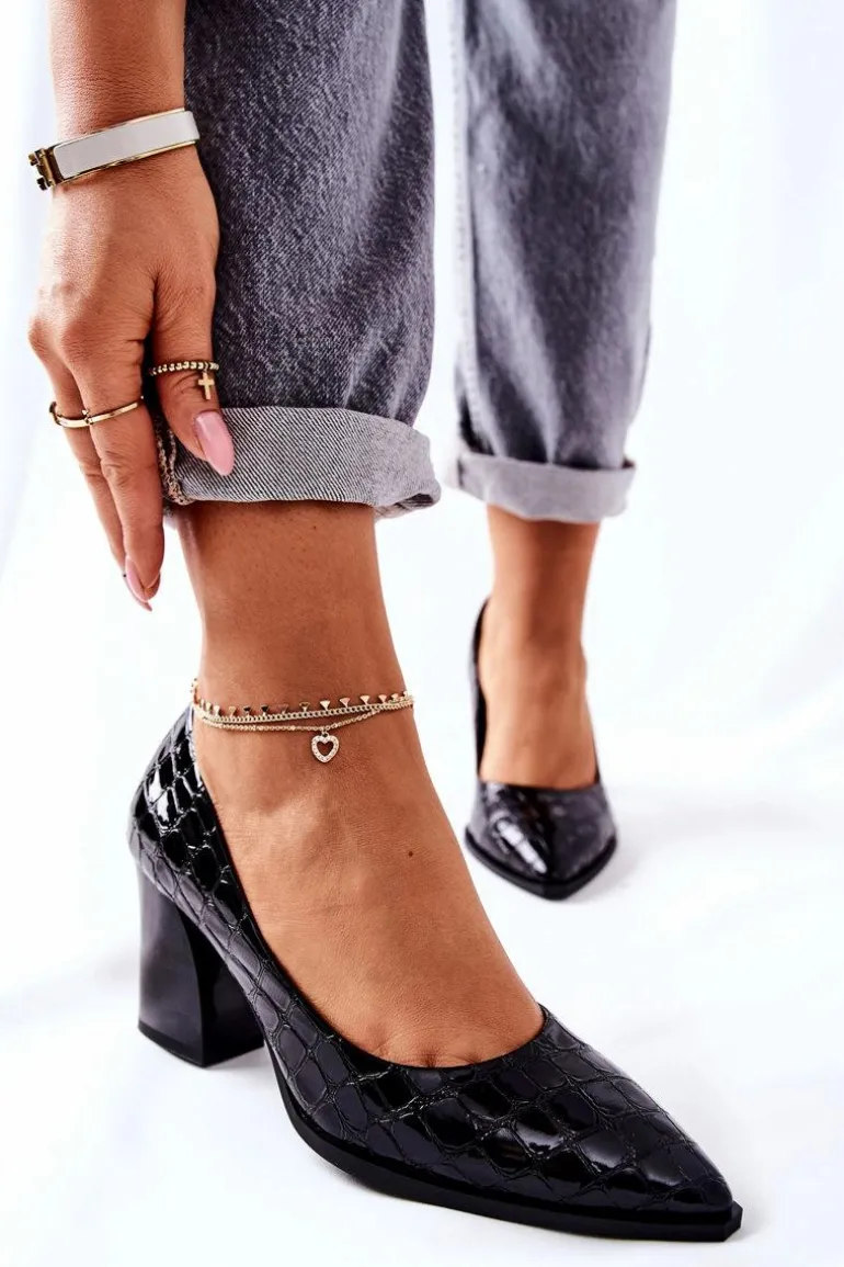 Eleganckie i niesamowicie wygodne czółenka. Buty wykonane są ze skóry ekologicznej. Posiadają wkładkę ze skóry naturalnej. Faktura skóry krokodyla. Przy wyborze rozmiaru prosimy sugerować się tabelą rozmiarów.