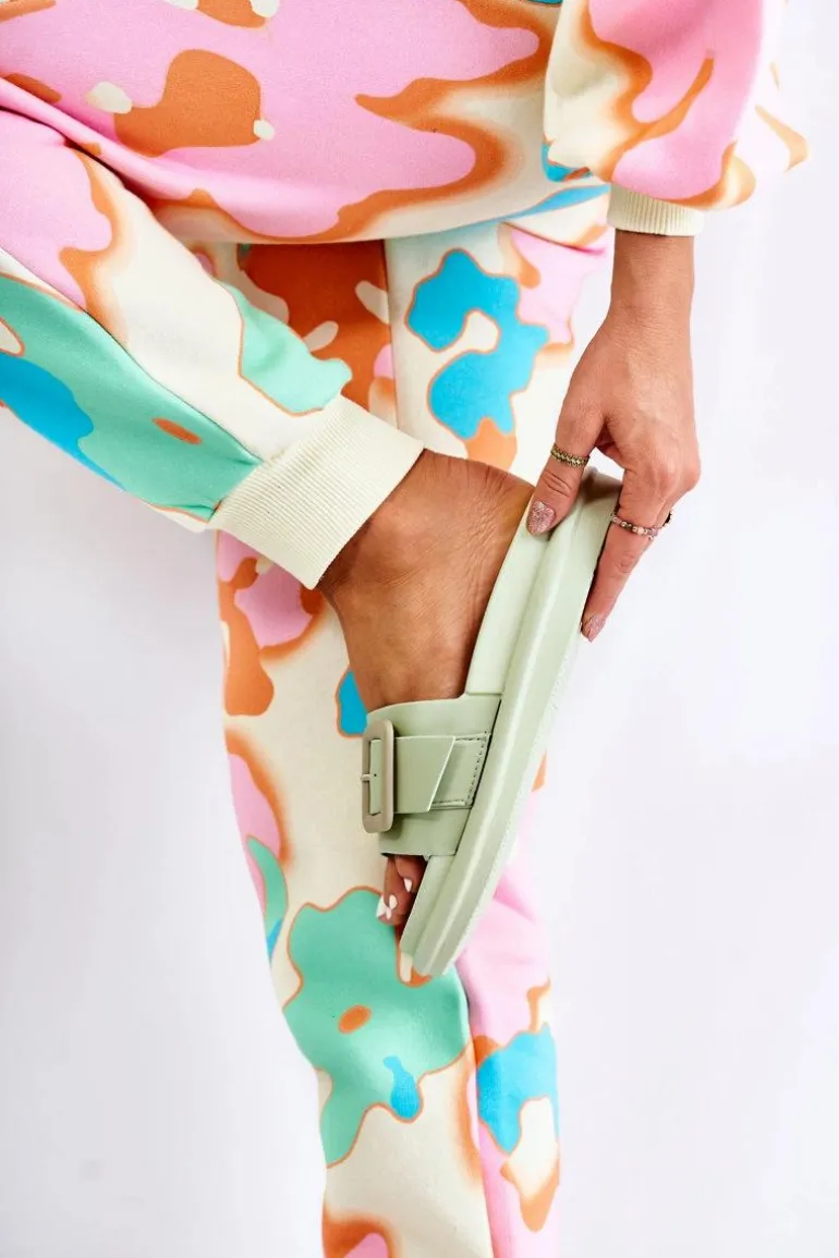 Damskie Skórzane Klapki Z Klamrą Zielone Devia