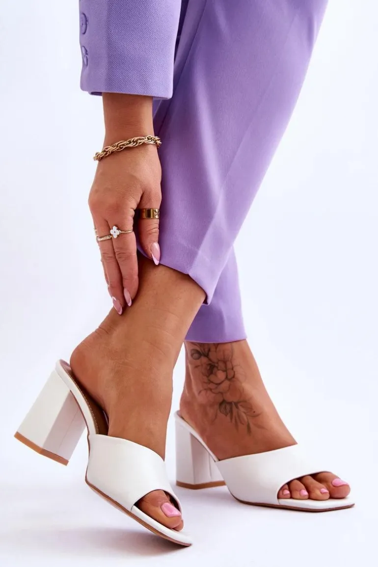 Damskie Skórzane Klasyczne Klapki Białe Loara