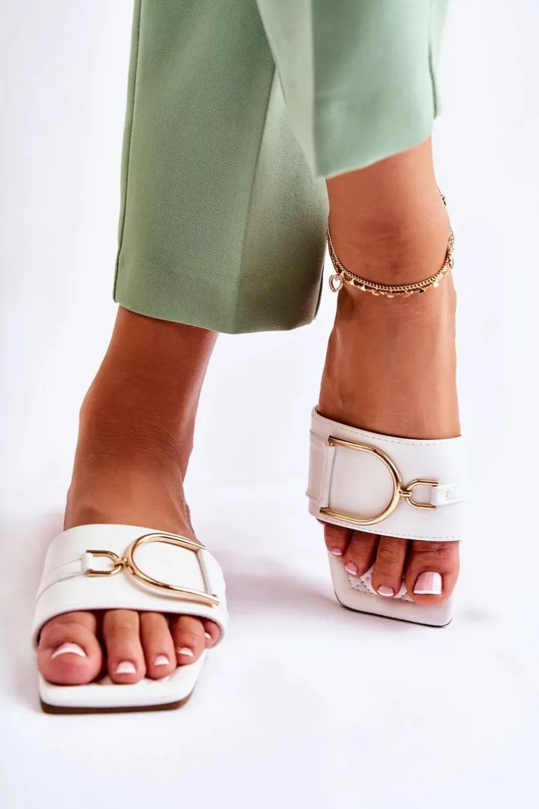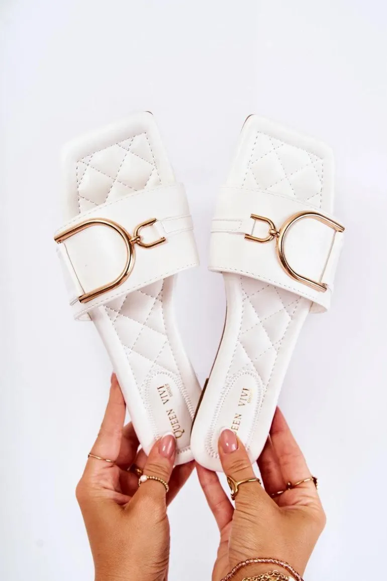 Klasyczne klapki damskie zostały wykonane z eko skóry. Posiadają zdobienie na przednim pasku. Miękka, pikowana wkładka wykonana z eko skóry zapewni komfort podczas użytkowania. Buty zostały osadzone na płaskim obcasie i antypoślizgowej podeszwie. Świetny model, który sprawdzi się podczas upalnych dni! Posiadają odkryty, kwadratowy nosek. Przy wyborze rozmiaru prosimy sugerować się tabelą rozmiarów.