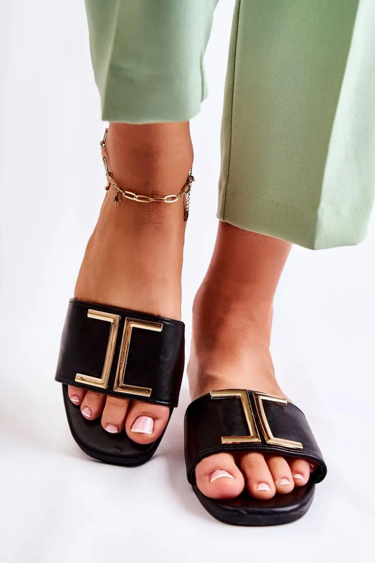 Klasyczne damskie klapki na płaskim obcasie to idealny model na co dzień! Wykonane z eko skóry. Model wsuwany, z odkrytym noskiem. Z przodu znajduje się ozdobny emblemat. Podeszwa wykonana z gumowego tworzywa, która jest antypoślizgowa. Wkładka wykonana z eko skóry zapewnia komfort podczas użytkowania. Świetny model, idealny do wielu stylizacji! Koniecznie powinnaś je mieć! Przy wyborze rozmiaru prosimy sugerować się tabelą rozmiarów.