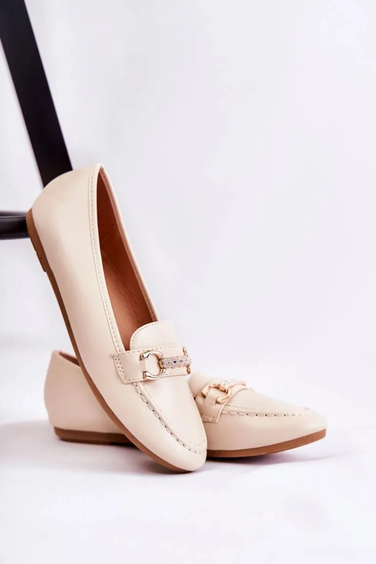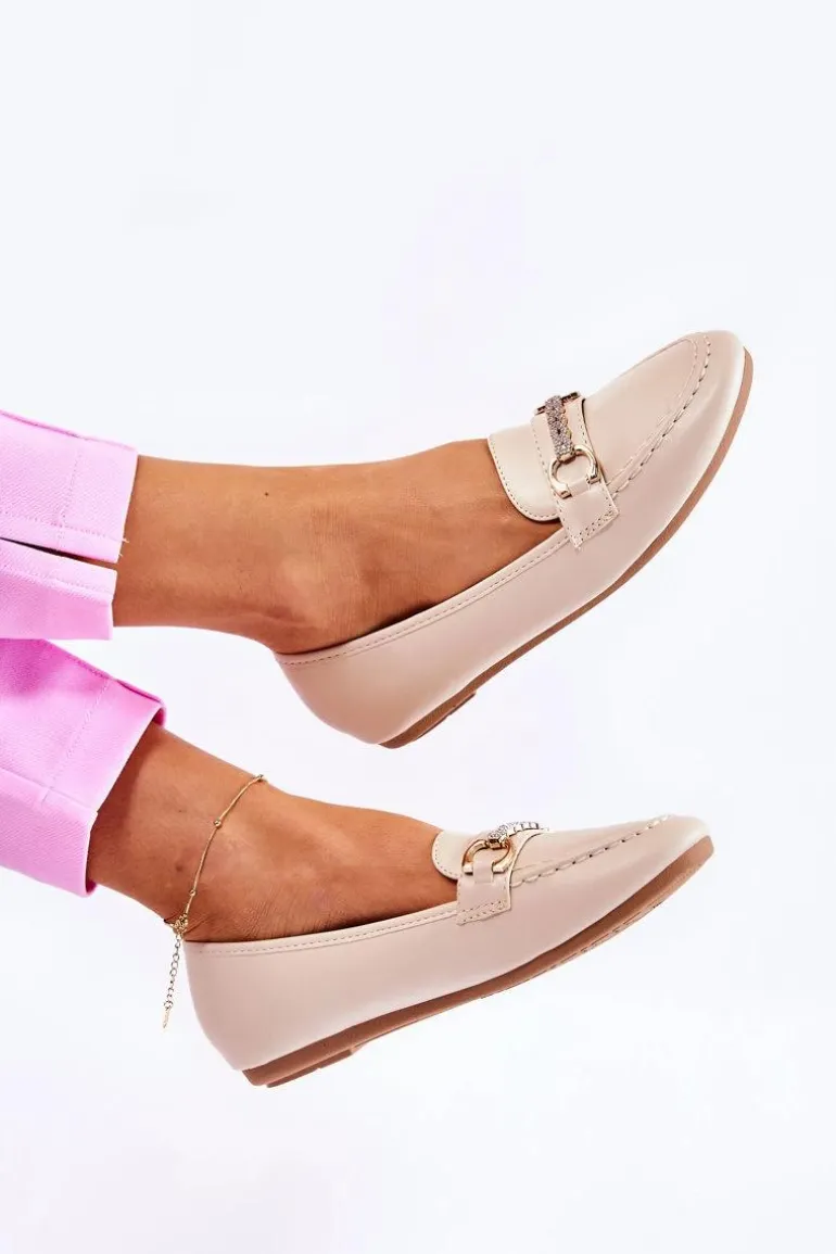 Eleganckie mokasyny osadzone na płaskim obcasie. Zostały wykonane z wysokiej jakości eko skóry z dbałością o każdy detal. Miękka wkładka z perforacją zadba o Twój komfort podczas użytkowania. Mokasyny sprawdzą się w wielu stylizacjach. Na przodzie znajduje się ozdobny element z dżetami imitującymi cyrkonie. Nosek zaokrąglony. Przy wyborze rozmiaru prosimy sugerować się tabelą rozmiarów.