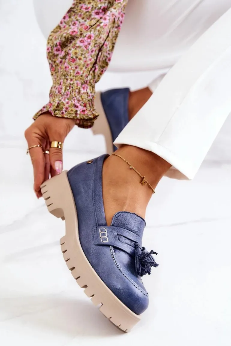 Półbuty firmy Maciejka w fasonie loaferów! Idealne na sezon wiosenno-jesienny. Dopasujesz je do wielu stylizacji. Zostały wykonane z wysokiej jakości naturalnej skóry. Posiadają ozdobne frędzelki na przodzie. Stabilny, płaski obcas z traperową podeszwą świetnie sprawdzi się na co dzień! Miękka, delikatnie perforowana wkładka zapewni komfort w użytkowaniu. Idealne buty do pracy, szkoły czy na weekendowe spotkanie ze znajomymi.Przy wyborze rozmiaru prosimy sugerować się tabelą rozmiarów.