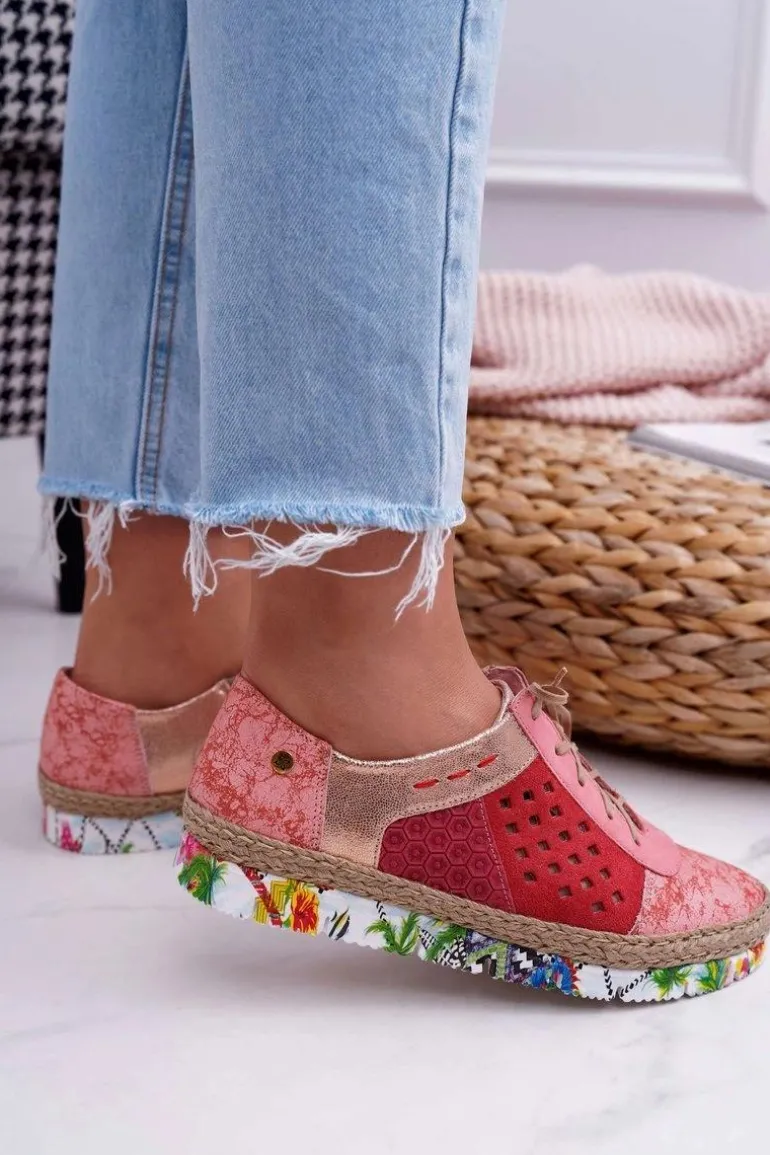 Damskie Skórzane Półbuty Maciejka Koralowe 03339-18