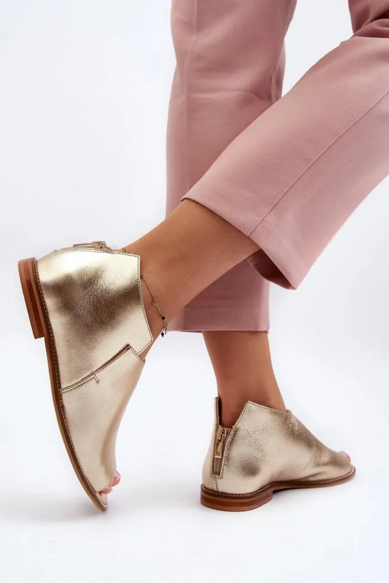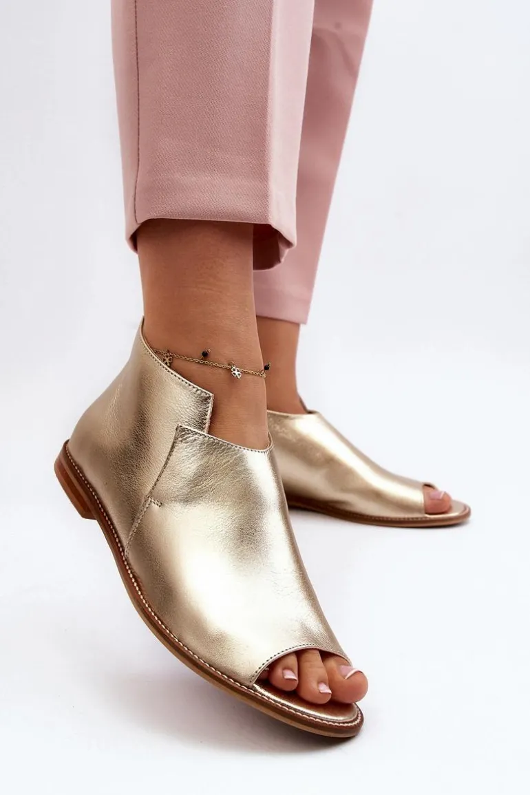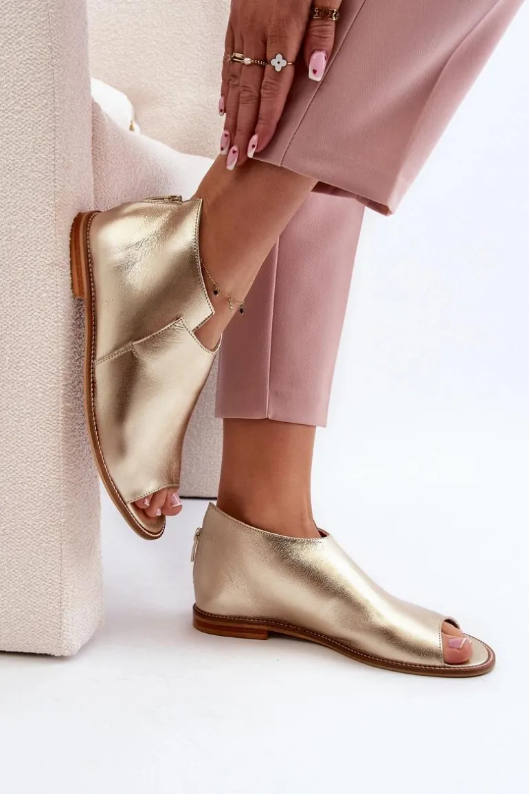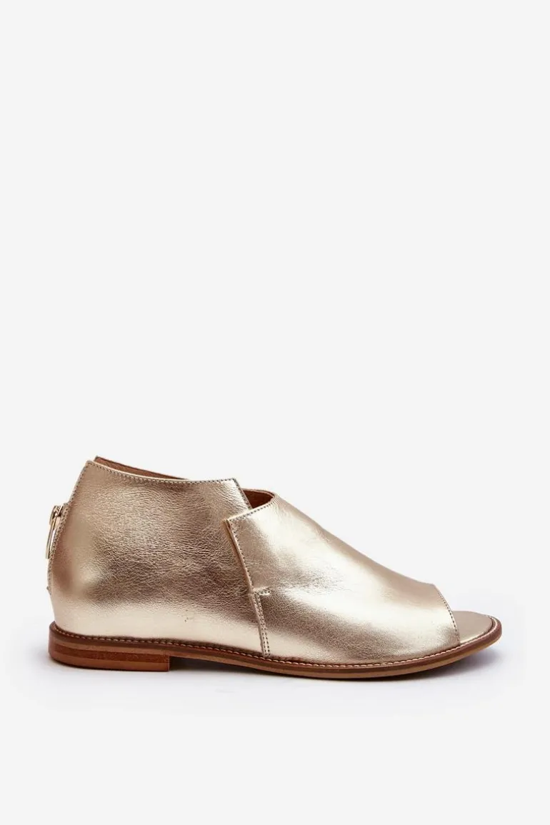 Eleganckie sandały marki Laura Messi. Buty wykonane są ze skóry naturalnej z dbałością o każdy detal. Osadzone na płaskim obcasie. Model z zakrytą piętą. Z tyłu suwak. Skózana wkładka zapewni wygodę podczas użytkowania. Ten niezwykle stylowy fason koniecznie musi znaleźć się w Twojej letniej garderobie! Przy wyborze rozmiaru prosimy sugerować się tabelą rozmiarów.