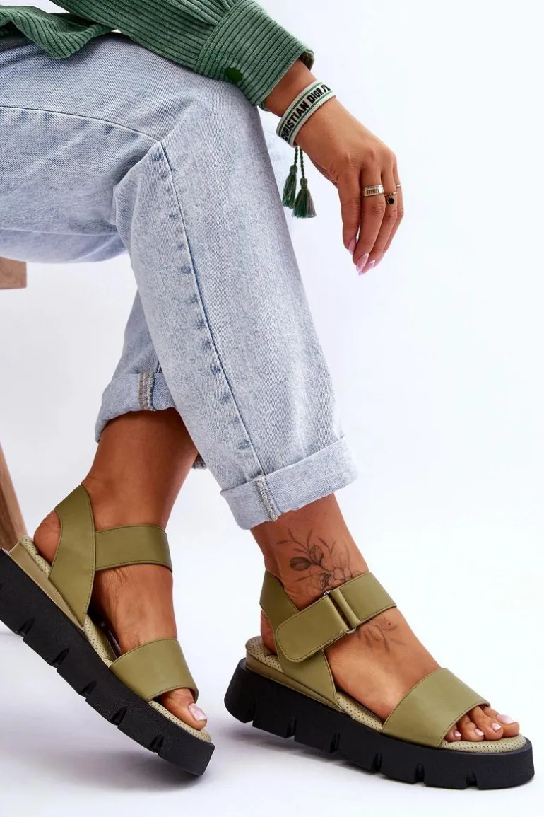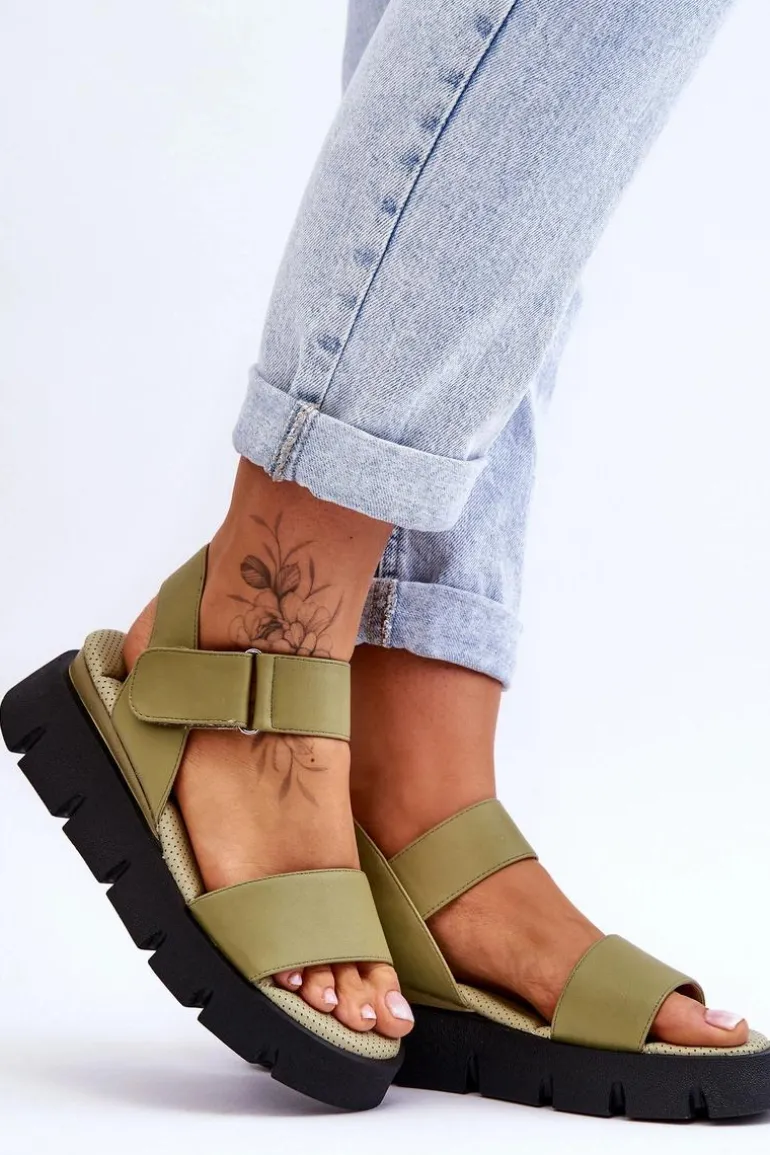 Damskie sandałki zostały wykonane z eko skóry. Model posiada zapinanie na rzepy. Wkładka w tych butach jest perforowana oraz niezwykle miękka. Została wykonana także z eko skóry. Sandałki osadzono na masywnej platformie oraz delikatnym koturnie. Świetny model na upalne dni! Przy wyborze rozmiaru prosimy sugerować się tabelą rozmiarów.