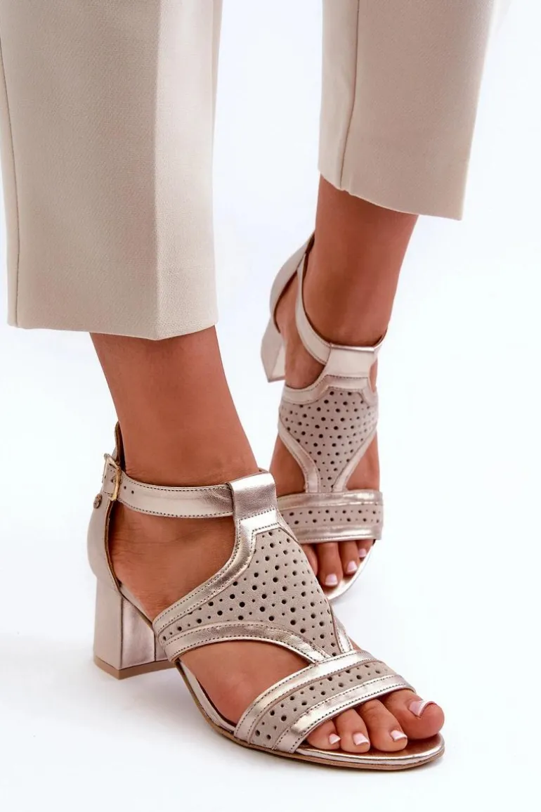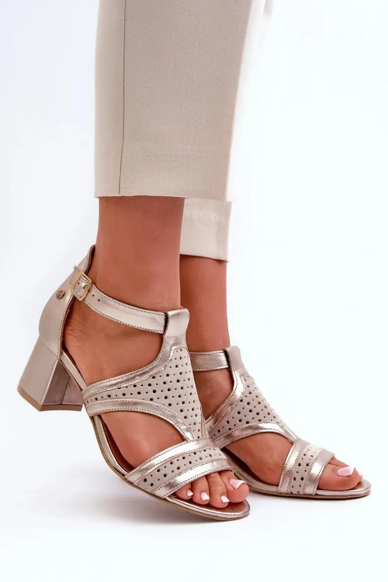 Wyjątkowe sandały na obcasie w postaci słupka od marki Maciejka. Buty wykonane są ze skóry naturalnej z dbałością o każdy detal. Miękka, skórzana wkładka to gwarancja komfortu! Zapinane na regulowany pasek ze sprzączką. Usztywniany zapiętek świetnie ustabilizuje stopę. Koniecznie sprawdź całą naszą kolekcję butów marki Maciejka. Przy wyborze rozmiaru prosimy sugerować się tabelą rozmiarów.