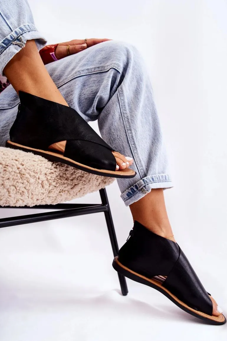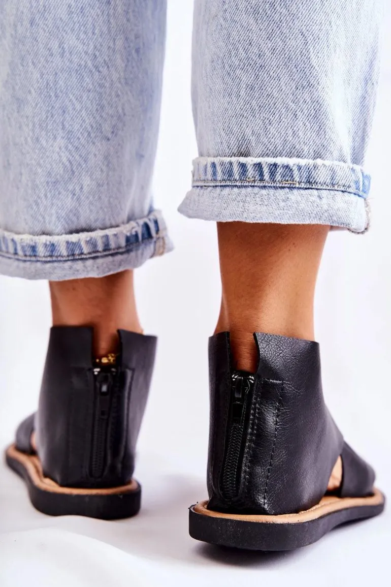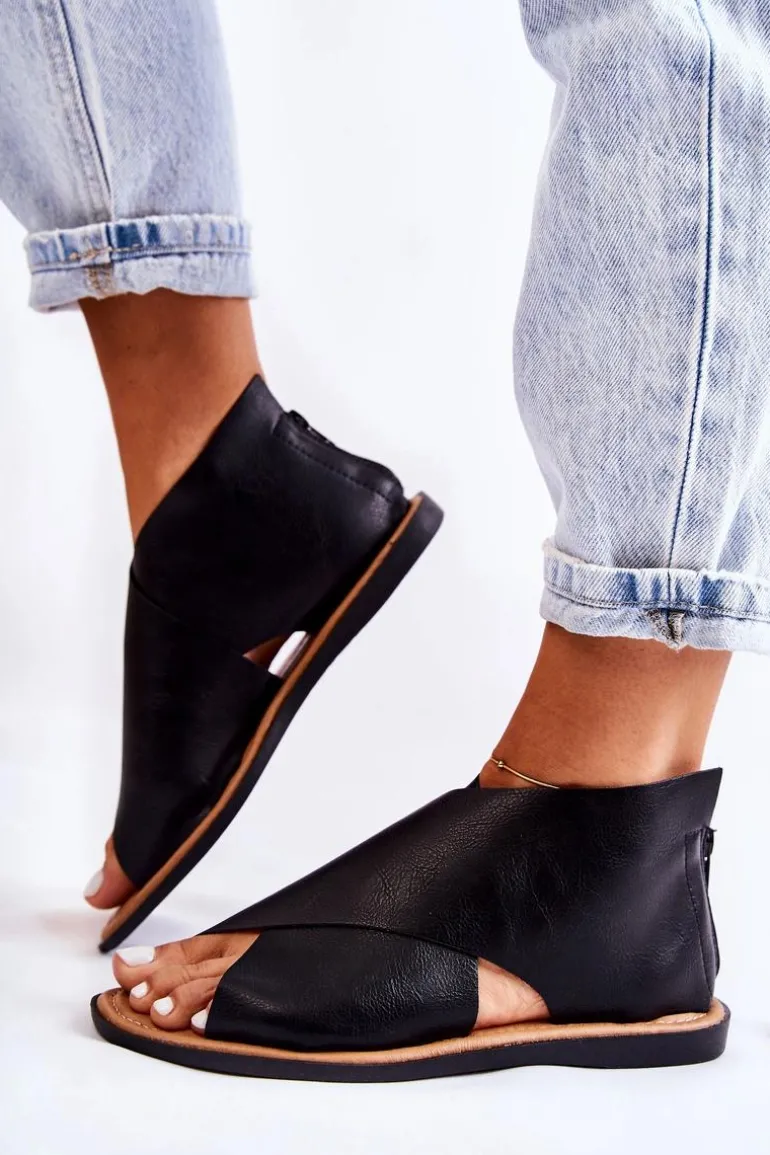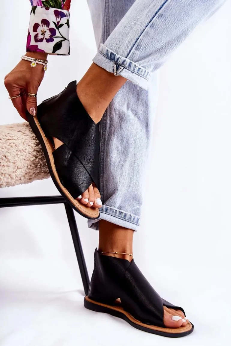 Damskie Skórzane Sandały Na Szeroką Stopę Czarne Catalise