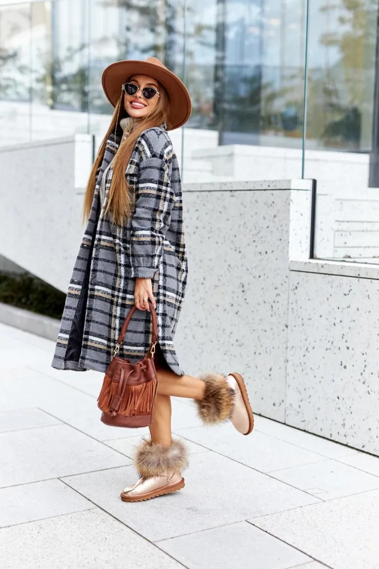 Śniegowce to idealny wybór na chłodne dni. Buty wykonane są z naturalnej skóry zamszowej. Futerko wokół kostki jest naturalne natomiast wnętrze zostało ocieplone grubym eko futerkiem. Koniecznie sprawdź całą naszą kolekcję śniegowców! Przy wyborze rozmiaru prosimy kierować tabelą rozmiarów.