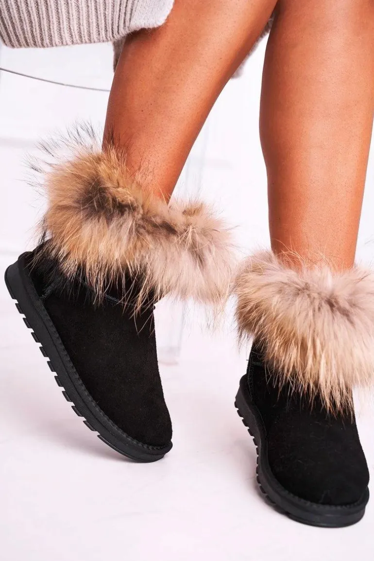 Śniegowce to idealny wybór na chłodne dni. Buty wykonane są z naturalnej skóry zamszowej. Futerko wokół kostki jest naturalne natomiast wnętrze zostało ocieplone grubym eko futerkiem. Koniecznie sprawdź całą naszą kolekcję śniegowców! Przy wyborze rozmiaru prosimy kierować tabelą rozmiarów.