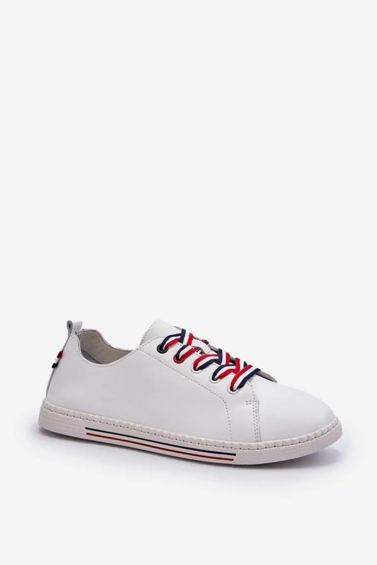 Tenisówki damskie wykonane z naturalnej skóry. Ich klasyczny design pozwala na łatwe dopasowanie do różnych stylizacji, a sznurowanie zapewnia pewne trzymanie stopy. Model ten posiada antypoślizgową podeszwę, co sprawia, że są one bezpieczne na różnych rodzajach nawierzchni. Klasyczny fason, który będzie pasować zarówno do spodni, jak i sukienek, spódnic. Przy wyborze rozmiaru prosimy sugerować się tabelą rozmiarów.