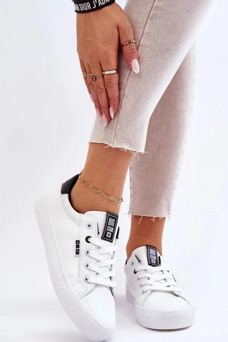 Tenisówki damskie od polskiej marki BIG STAR. Buty wykonane są z wysokiej jakości skóry ekologiczne, dobrze dopasowują się do kształtu stopy. Przy wyborze rozmiaru prosimy sugerować się tabelą rozmiarów.